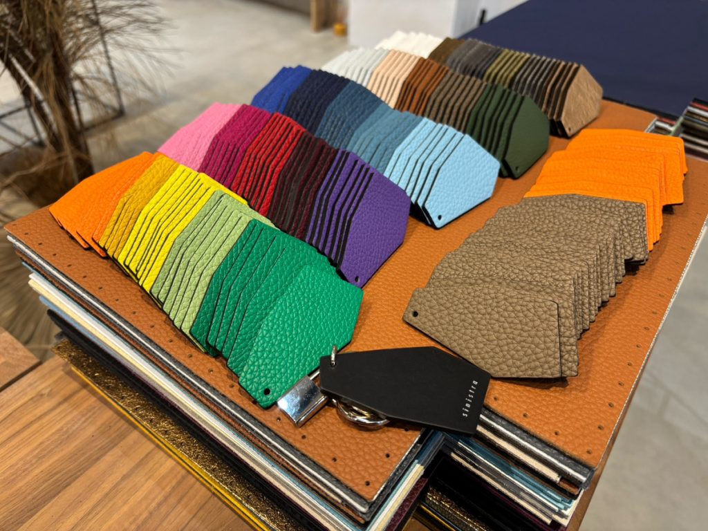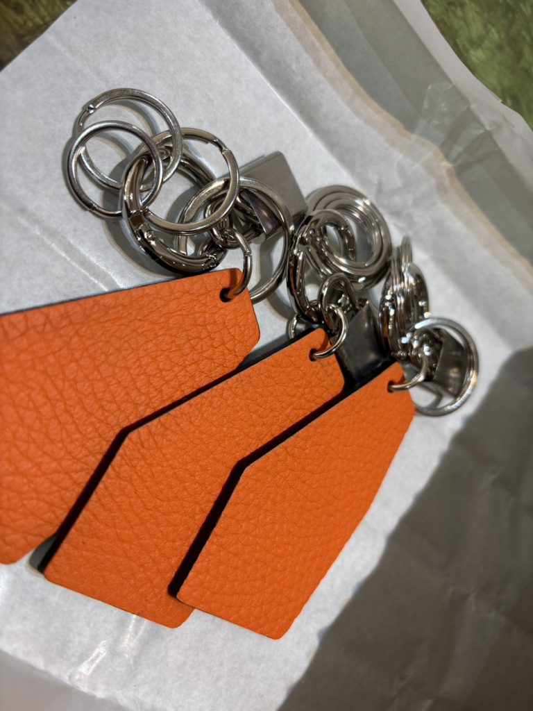 芦屋店へはアソートでお店に入荷しておりますので、お好きな色を選んで下さいね。オンラインショップでは人気のオレンジとエトープ、2色のレザーでご用意しております。