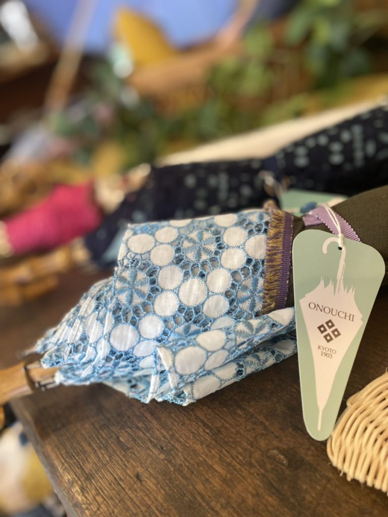 The designs created by Kaori san feature combinations such as lace with a single color or vibrant color with another color, resulting in umbrellas that you won’t see anywhere else. Many of Onouchi Shoten’s customers collect several umbrellas and choose one to match their outfit for the day.