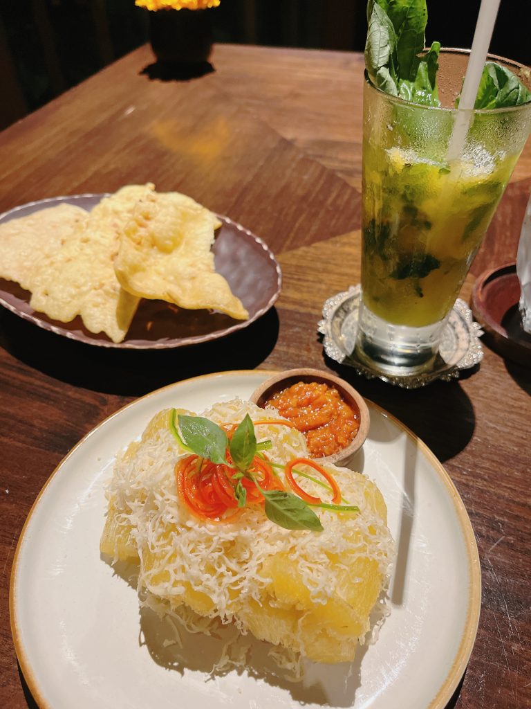 私は一人でこのレストランを訪れたのでたくさんのメニューを食べることはできませんでしたが素材にこだわり丁寧に作られているのがよく分かり、サンバルも辛すぎず(ココポイント!)新鮮でとても美味しかった~!ちなみに頼んだメニューは ◆SINGKONG GORENG KEJU Singkongはキャッサバの事でインドネシアでよく食べられる繊維質のあるお芋、Gorengは揚げるという意味、Kejuはチーズのこと。揚げたホクホクのお芋にサンバルが添えられています。マクドナルドのポテトにチーズトッピング&チリソース、の最上級番と言えばいいでしょうか、笑。それに加えて
