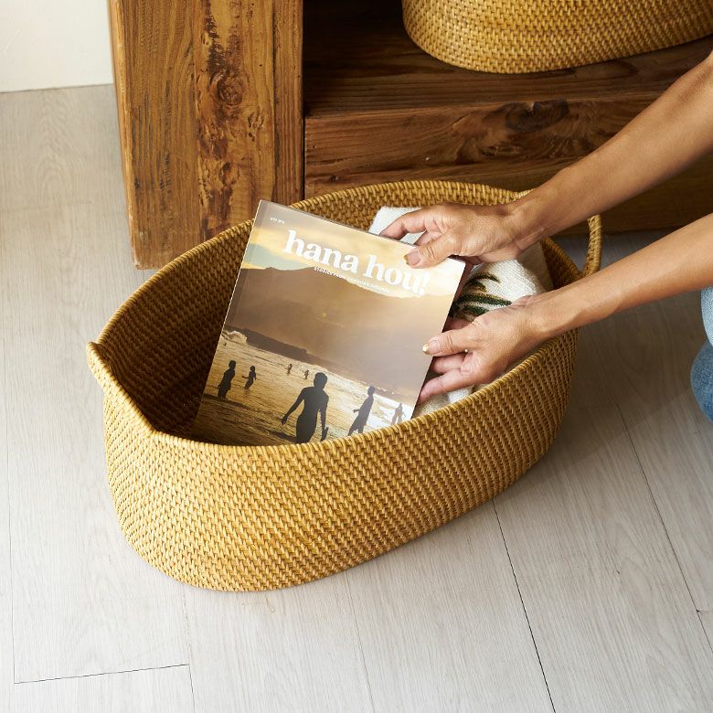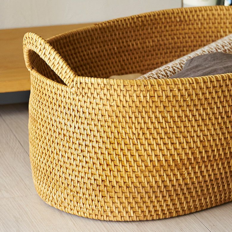 犬や猫との暮らしは人生を何倍も豊かにしてくれるもの。暖かい温もりや柔らかな感触、純粋で無邪気な気持ち、そっと寄り添ってくれる優しさ、そのどれもが愛しい一瞬一瞬です。誰もがそんなペットとの暮らしを夢見たことがあるのではないでしょうか。一緒に行くお散歩や日向ぼっこが気持ちよくなるこれからの季節、そんなワンちゃんやネコちゃんとの暮らしに優しく寄り添うインテリアグッズを一挙ご紹介。 地球に優しいサステナブルな天然素材はワンちゃんやネコちゃんにも優しく、私たち自身にも優しい素材ばかりです。 土に還る地球に優しい素材を使ったバスケットやファブリック、小物入れなどをお部屋に取り入れ、より快適で心豊かな空間にしませんか? ペットグッズをまとめて入れておくのに便利なハンドル付きバスケットは素材や色違いでたくさんご用意しております。置く場所や入れるもので大きさを選べるので、サイズ違いで使うのもおススメです。もちろん、ペットグッズ以外にもお使い頂けます。