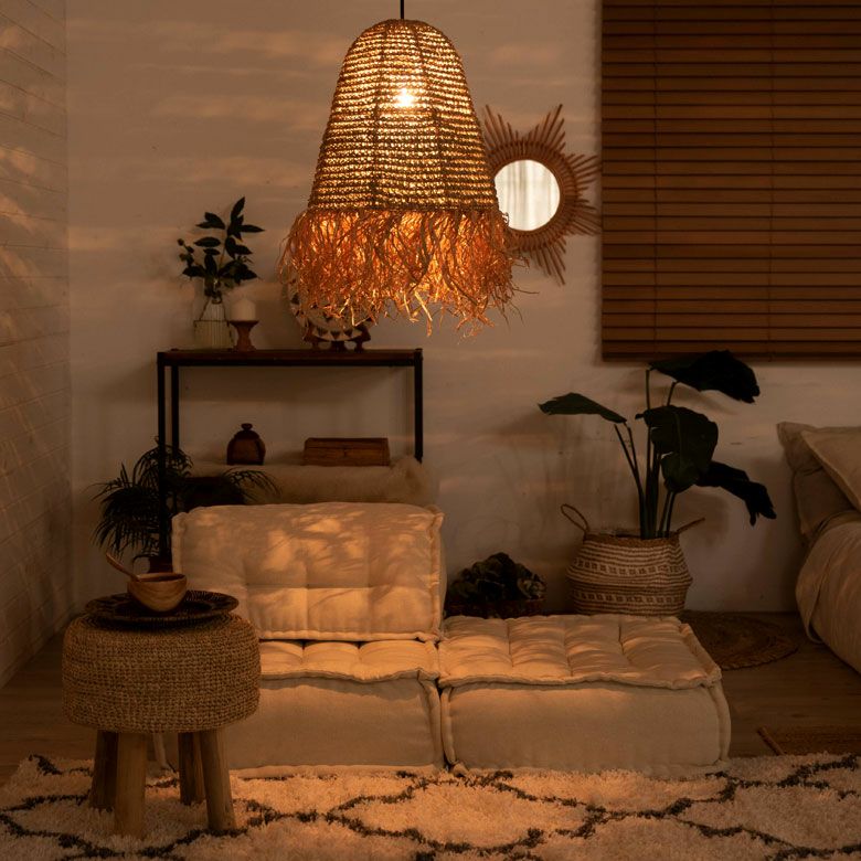 お部屋を優しい光で包むラフィアのペンダントライト