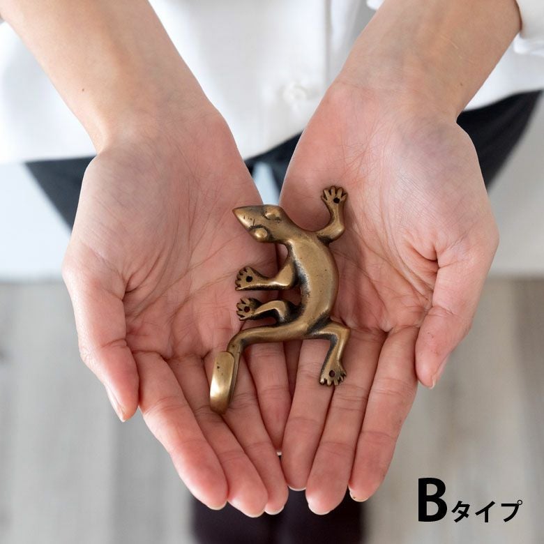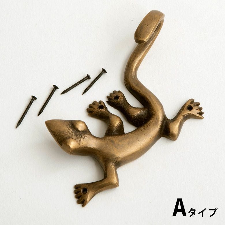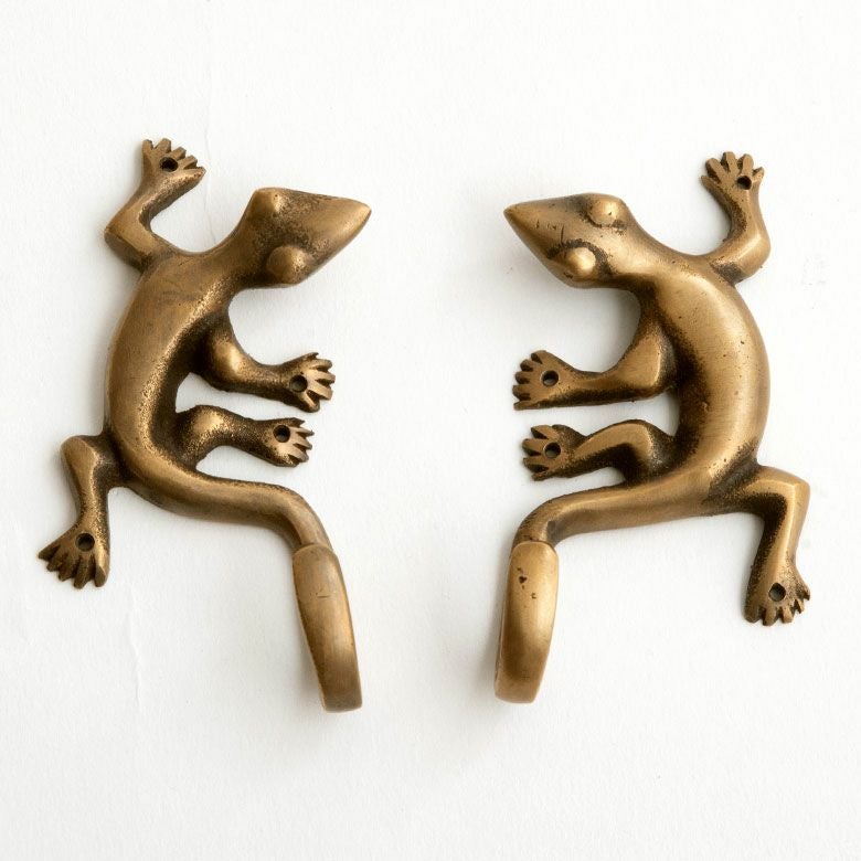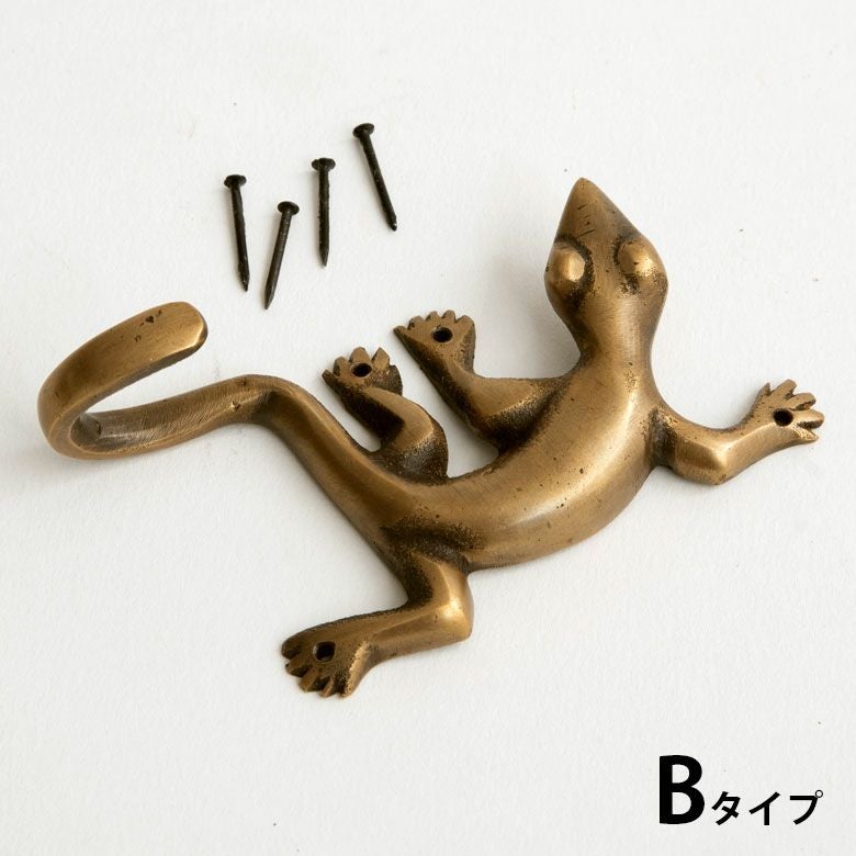 躍動感のあるフォルムがアジアン空間を演出する、ヤモリの真鍮フック。