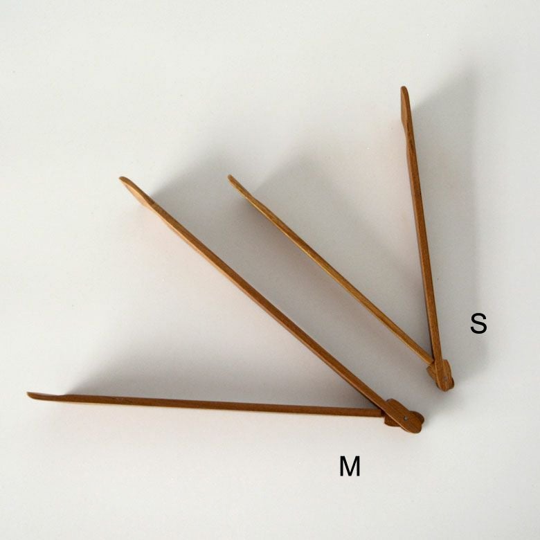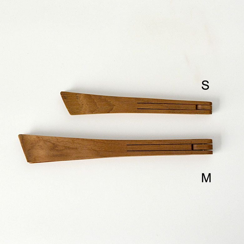 収納時にはフラットになり、使用する際はクルっと開いて回転させるとトングのV字になります。引き出しの中で引っかかることがないので、SとMのサイズ違いで持ちたくなります。