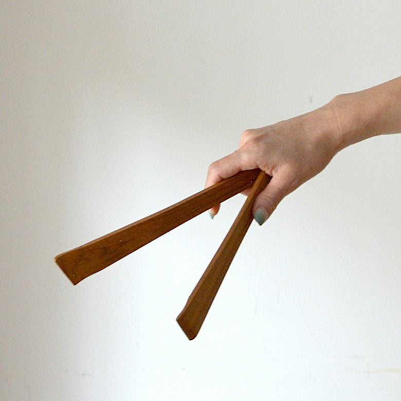 ステンレスやプラスチックのトングと違い、手に馴染みが良く、自然と持つ手も優しくなるサラダトングです。