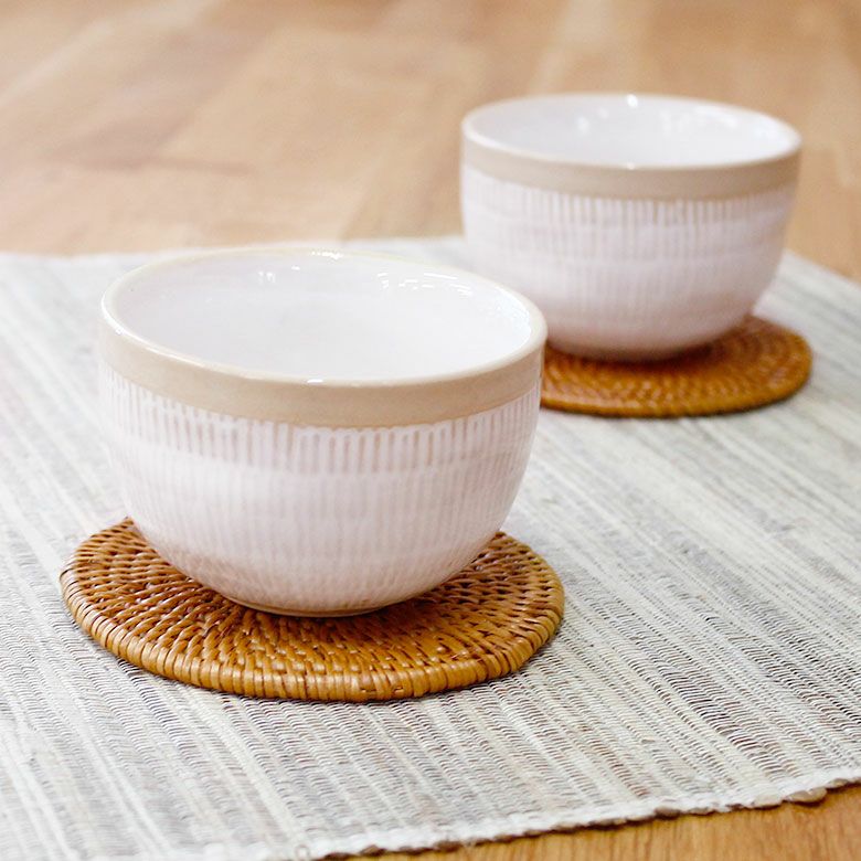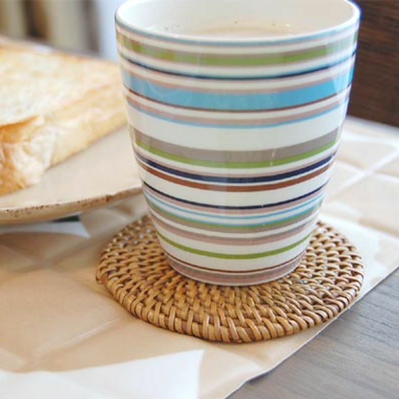 | ご注意 | ※ハンドメイドのためサイズ・形が写真と異なる場合があります。 ※表示される画像の色は、モニターやブラウザ等によって実際の商品と若干異なる場合がございます。 ※乾燥によってアタの繊維が収縮すると”ゆがみ”が生じる場合があります。小さなゆがみであれば逆方向にひねれば解消することができます。強くひねり過ぎると壊れる場合もありますのでご注意ください。 ※アタのコースターやランチョンマットは中央部分に編み始めがあり、その部分は盛り上がりがあるので多少のガタつきがございます。 |