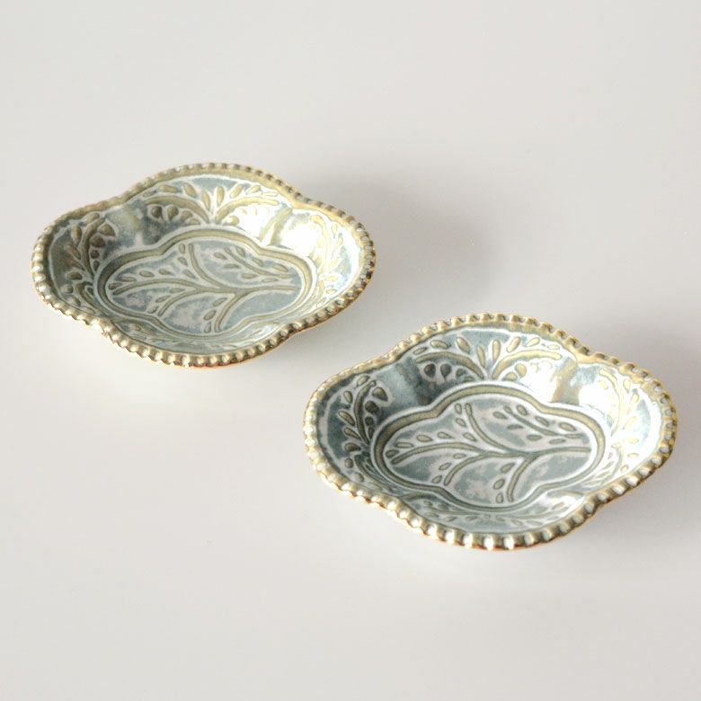 小さなお菓子を入れたりお醤油や薬味を入れておくだけで、普段の食卓を華やかな雰囲気に変えてくれる一皿。