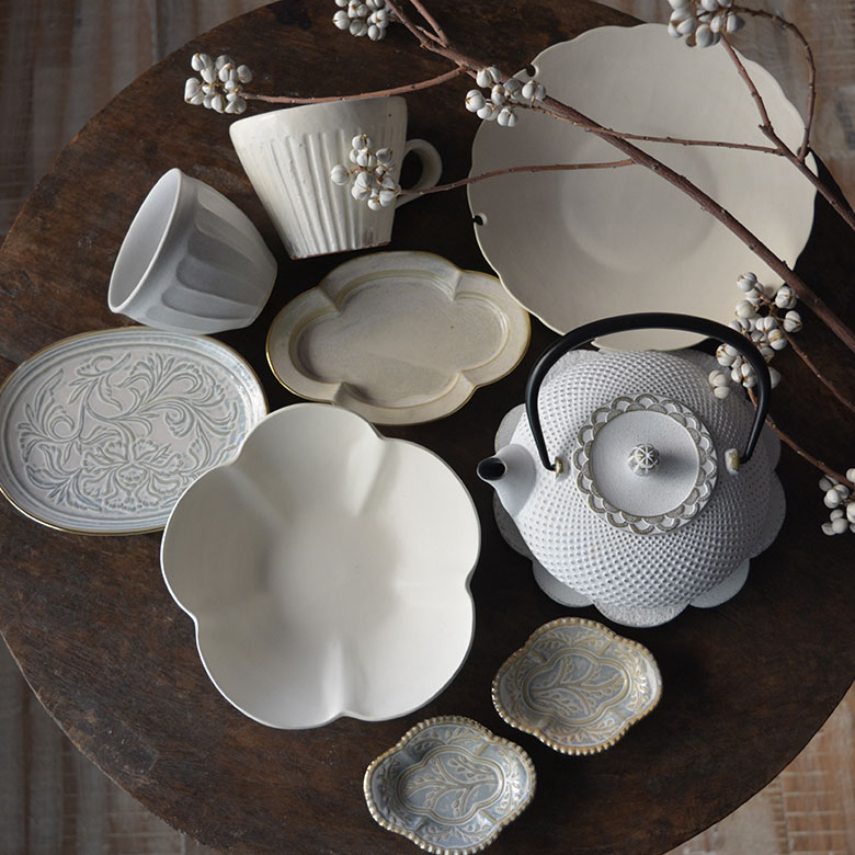 白一色でも表情と趣きがあるのが、焼き物の魅力。ぜひ、お気に入りの器で日々のテーブルを彩ってみてください。