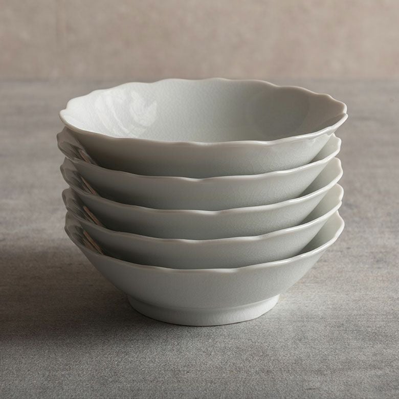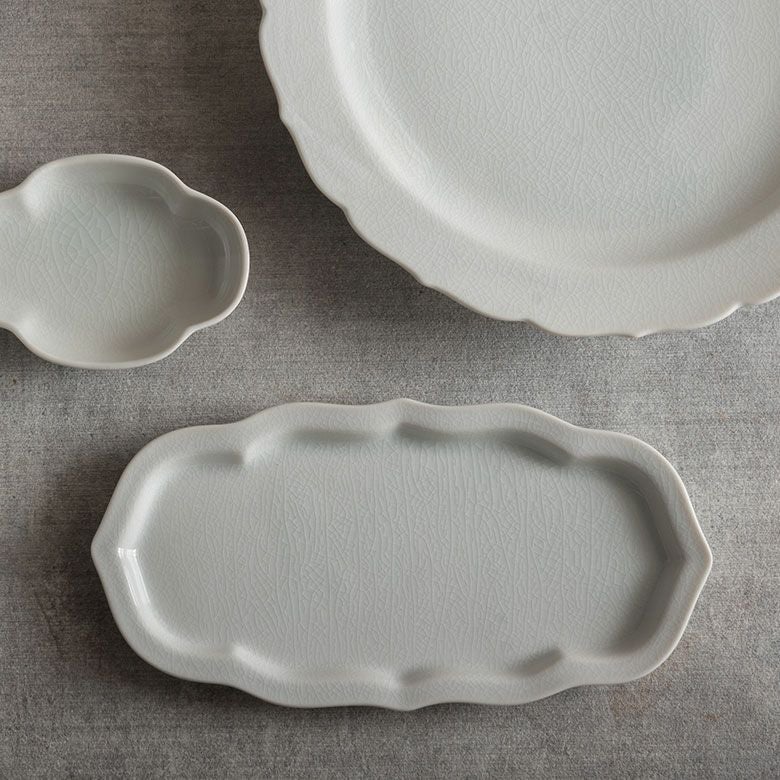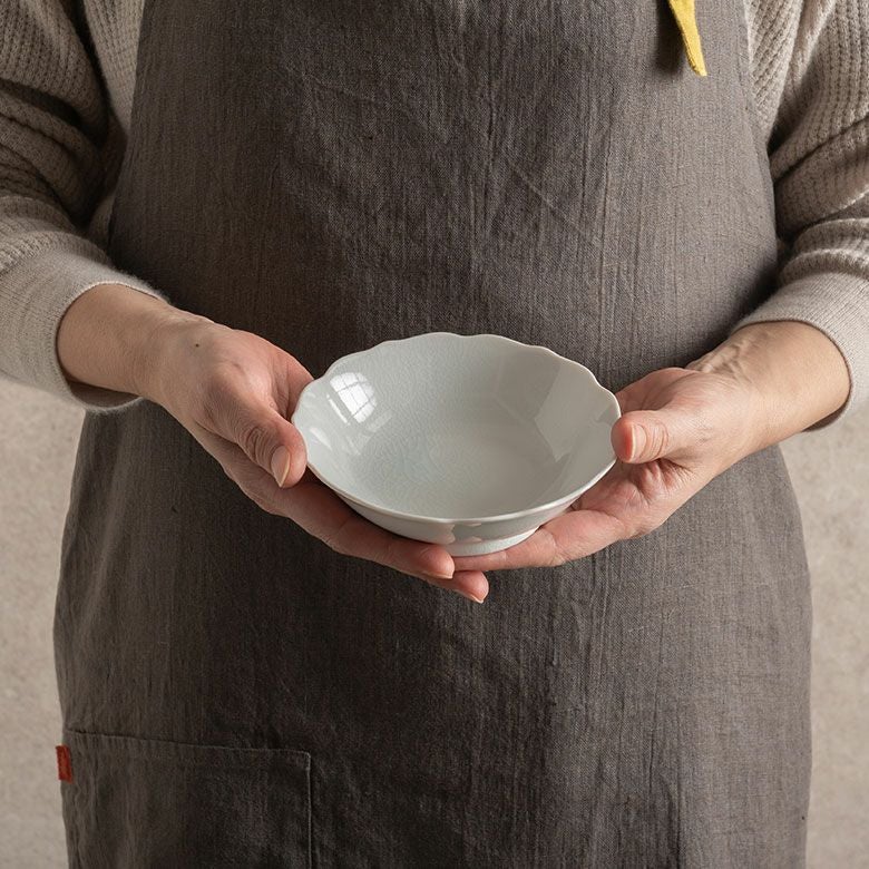 九谷焼は元々カラフルなものが多く、日常に使う器としてどれを取り入れればいいかわからなかったのですが、この型九谷に出会って白磁の美しさと貫入の奥行きにすっかりとりこになりました。