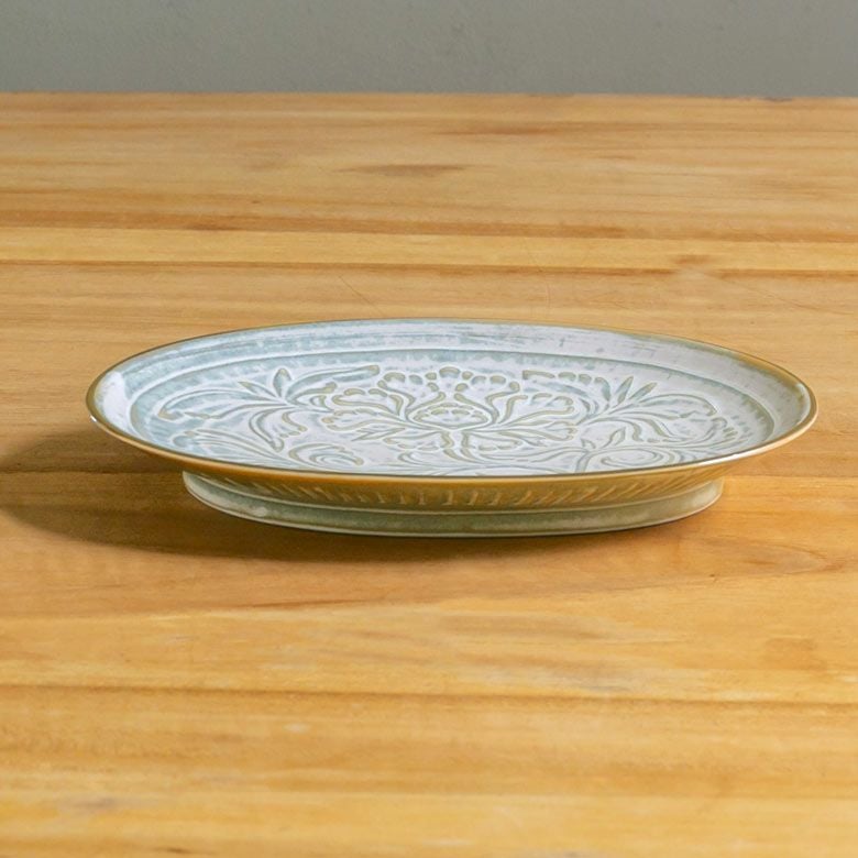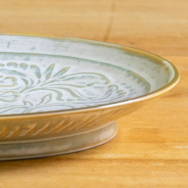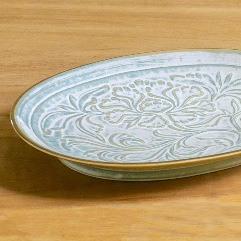【有田焼】花唐草彫り 楕円皿 ハクア 16㎝