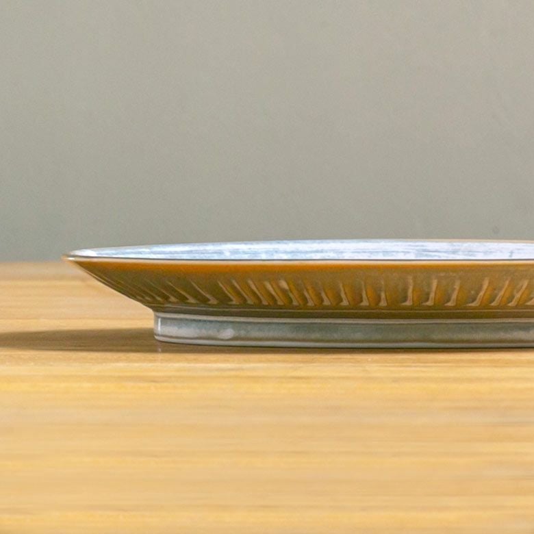 手の平サイズで“ちょうどいい大きさ”の楕円皿。横幅16㎝でテーブルの上でも収まりがよく、料理の取り皿としても、ティータイム用のスイーツ皿としてもぴったりな、使い勝手のいいサイズ大きさ。楕円というカタチが、他のお皿やカップとの間に配置しやすく、使用頻度が自然と高くなるお皿です。