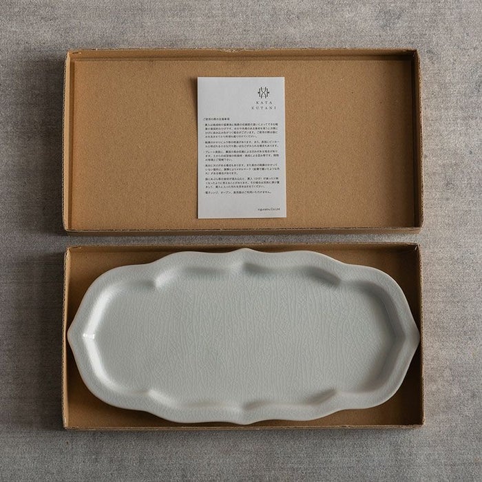 九谷焼といえば華やかな五彩色絵の磁器が有名ですが、器本来の美しい形にも目が届くよう、あえて無地に仕上げたのが「KATA KUTANI / 型九谷」です。 窯元の型から生まれた昔ながらの形を、絵付けを施さず、貫入の表情だけで仕上げることで、豊かな表情と着いた雰囲気のあるラインに仕上げています。