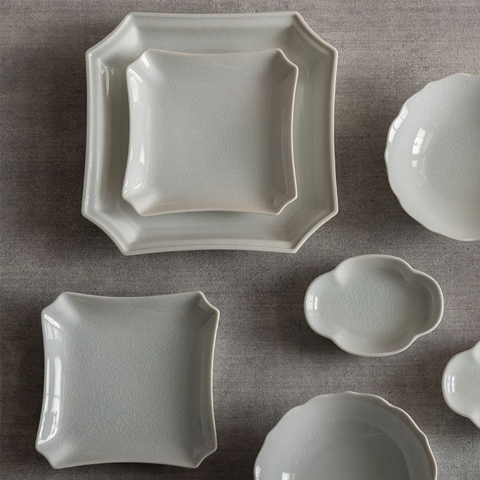 少し深さのある角皿でお料理をしっかりと受け止めてくれるお皿です。お肉料理やお魚料理を余白を持って一人分載せられ、お料理の色が白い器によく映えます。13cmの角皿とセットで持っていると普段使いからお正月使いまで通年使い回せる美しいお皿です。