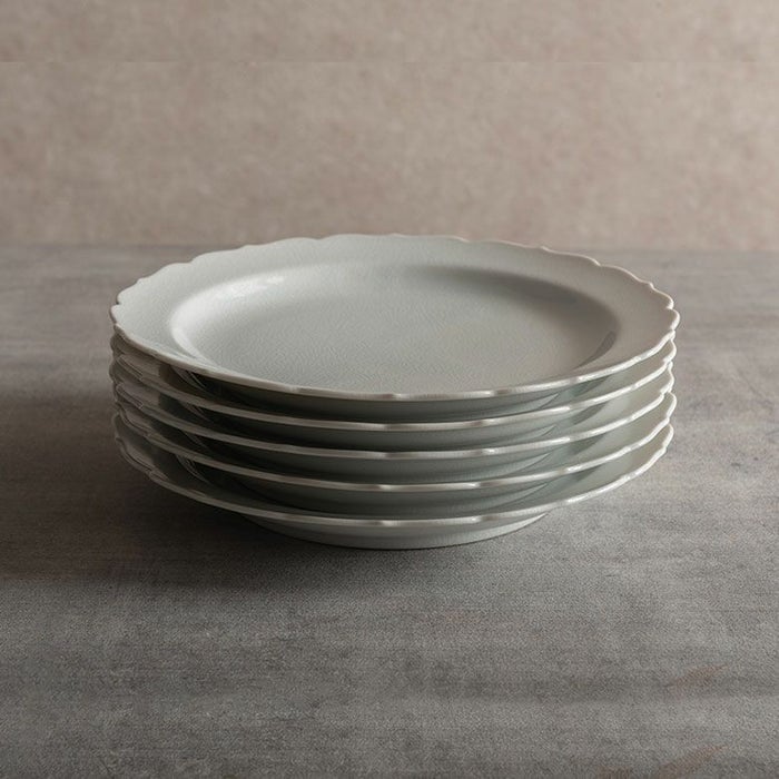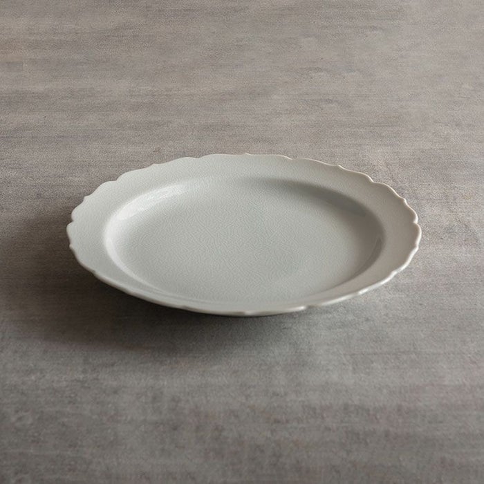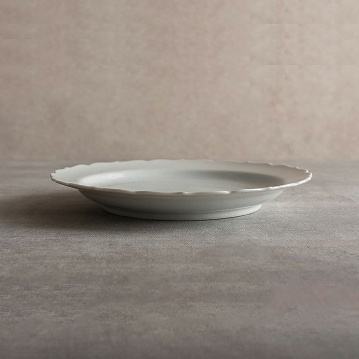 ちょっとよそ行きのネーミングがついたミート皿ですが実は日々の一品ものごはんにもピッタリ。パスタや炒飯、サラダなどを入れるのにちょうど良く、真っ白な器がお料理を美味しそうに引き立ててくれます。もちろん、ミネストローネとバケットなどの洋食にもピッタリ。スカラップの縁取りが品よく彩りを加えてくれます。