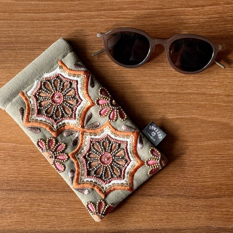 ビーズ刺繍のケースと