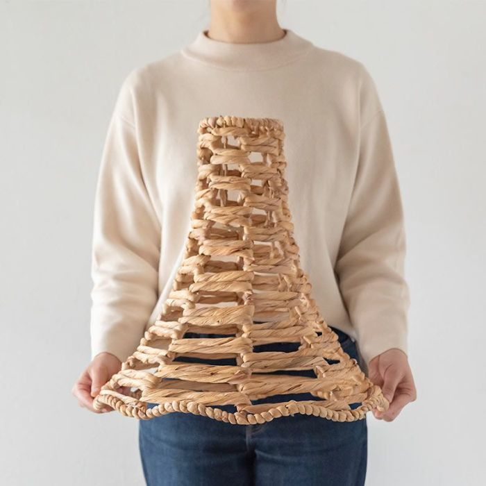 こちらはウォーターヒヤシンスと呼ばれる水草の一種で編まれたランプ。