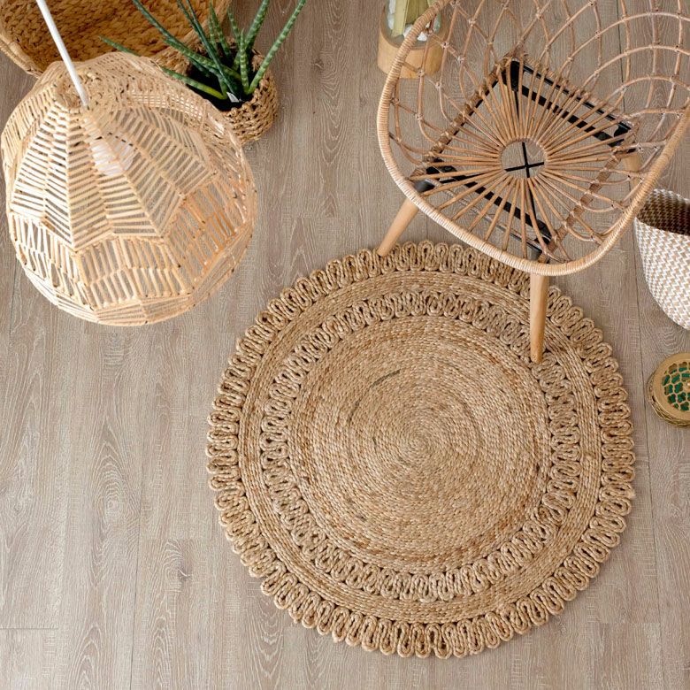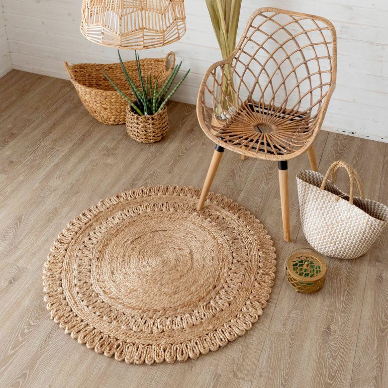 置いた場所をスペシャルな空間にしてくれるラウンドのジュートラグ。 アジアンスタイルやボーホースタイルのお部屋、海をテーマにしたお部屋などにしっくりとハマる個性派ラグです。
