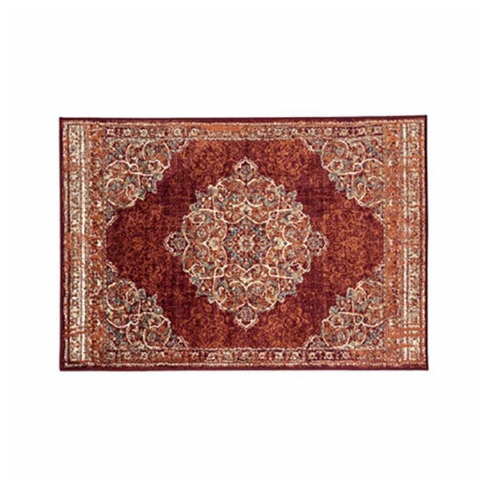 様々なカラーが入りながらも落ち着きのあるシャビーな色合い。ラグの中心に大きな柄が入った、ペルシャ絨毯の典型的な「メダリオンコーナーデザイン」です。柄の色は暖色を中心にアーシーなトーンでまとめられ、ウッディな家具や観葉植物とも好相性。大人のシックなインテリアに自然と馴染むラグです。