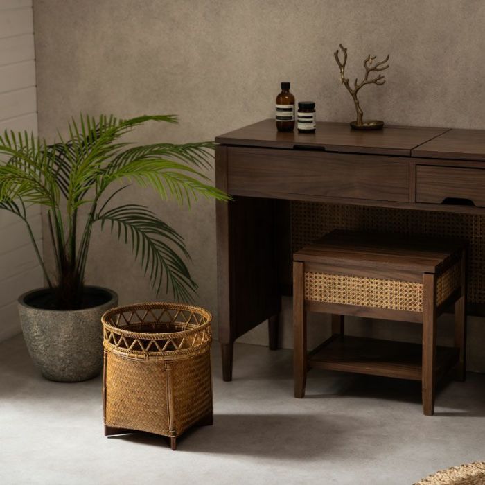 バスケット好きな方の中でもアジアン雑貨上級者の方の目に留まるであろうこちらのバスケット。植物を入れる他に、間口が広いのでリビングのゴミ箱としてやスリッパ入れとして玄関に置いても◎空間が品よく大人の雰囲気に仕上がります。