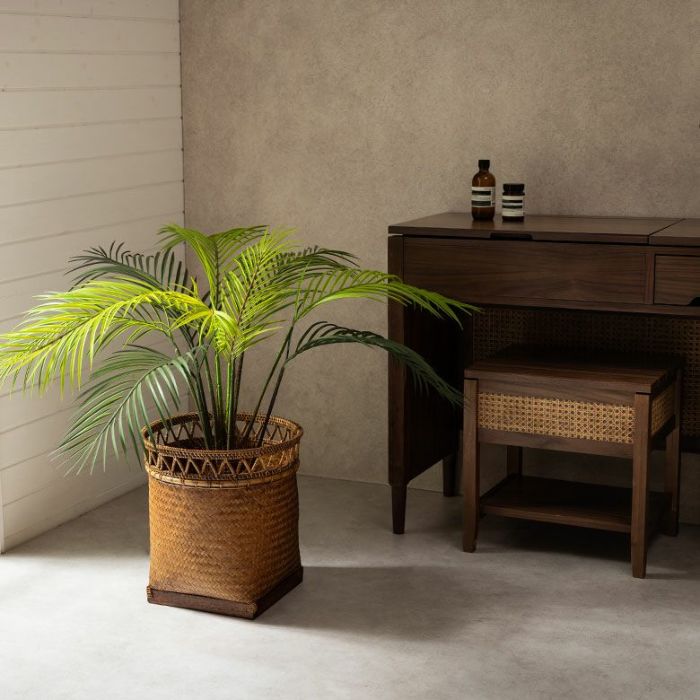 一つ一つインドネシアの職人がハンドメイドで作るバスケットは味わい深く、東南アジアの熱帯雨林で見かけるような深いグリーンを合わせるとお互いが引き立ちます。モンステラやヤシなど南国の植物がよく似合いますよ。