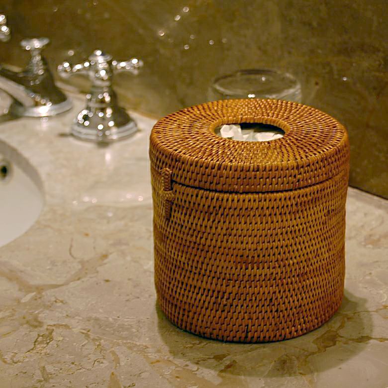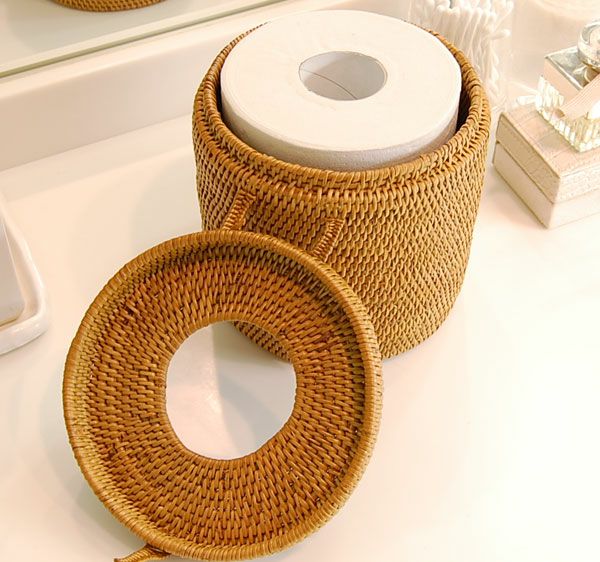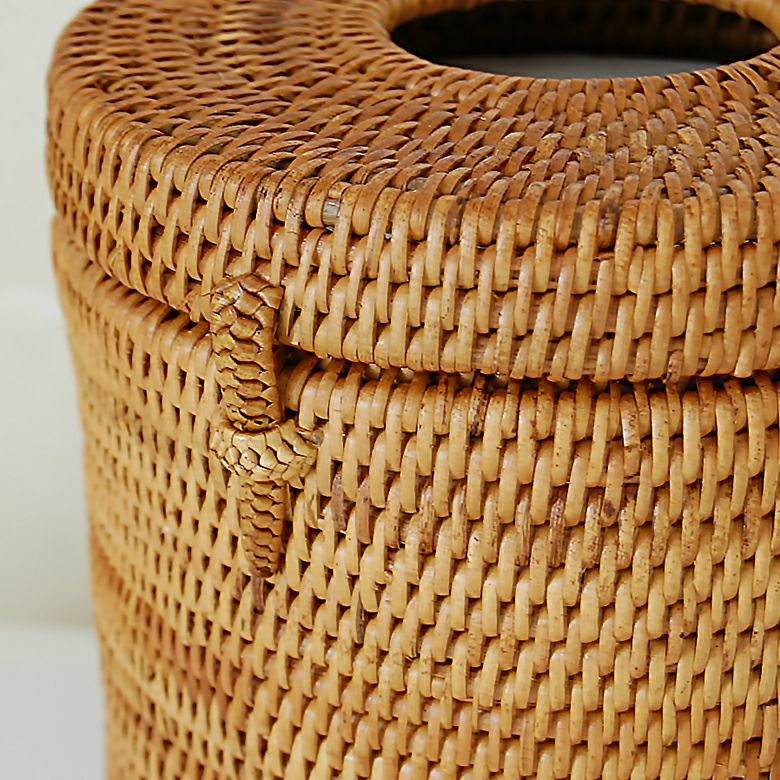 たっぷり収納で見た目すっきり アタとラタンで編まれたフタ付き大型バスケット 48L