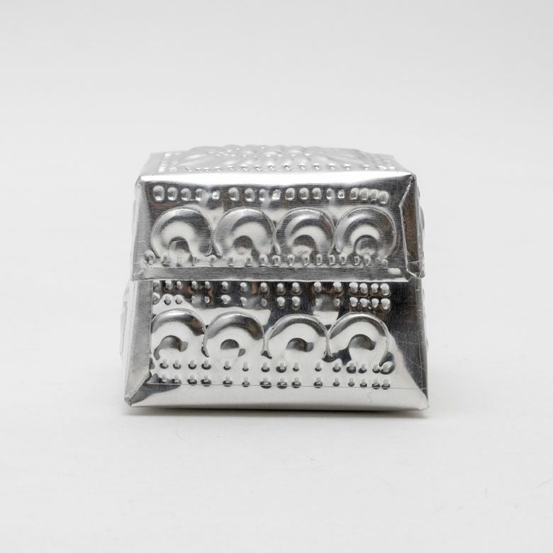 細かな模様もすべてハンドメイドなので、アルミ製の中にも温かみを感じられるケースです。