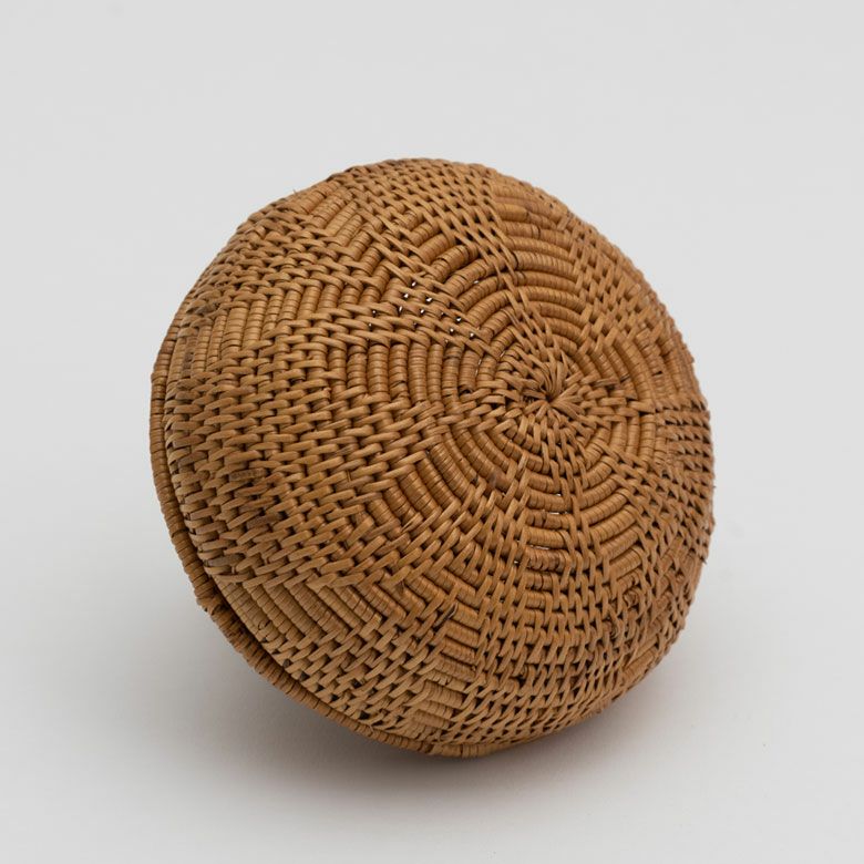 当店でも人気のあるアタで編まれた小物入れはマジックポットのような変わったデザインに作られています。