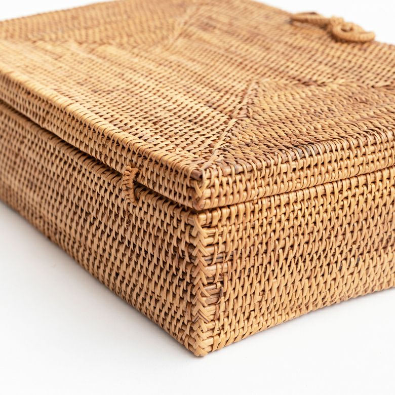 天然のアタを丁寧に編みこんで作り上げたアジアンボックス型バスケット。