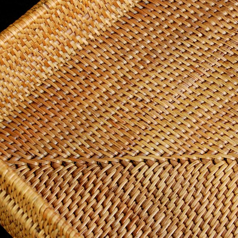 こちらはアタという素材で編まれています。 アタはインドネシアに自生するシダ科の植物です。 そのアタを乾燥させ、茎の部分を丁寧に裂いて編み込んでいき、約一週間天日干しして乾燥させ、その後ココナッツチップなどで1〜3日間燻します。 燻すことにより型崩れしない、そして虫にも強いアメ色の丈夫なアタ製品となります。