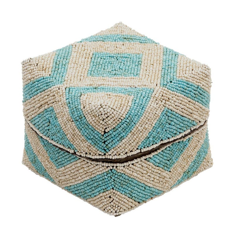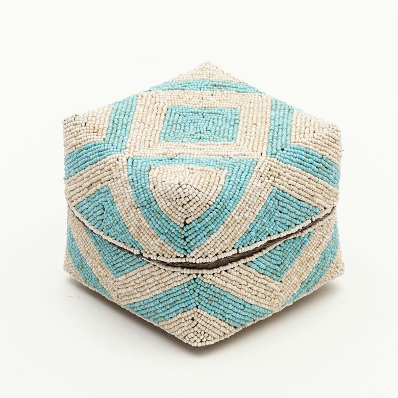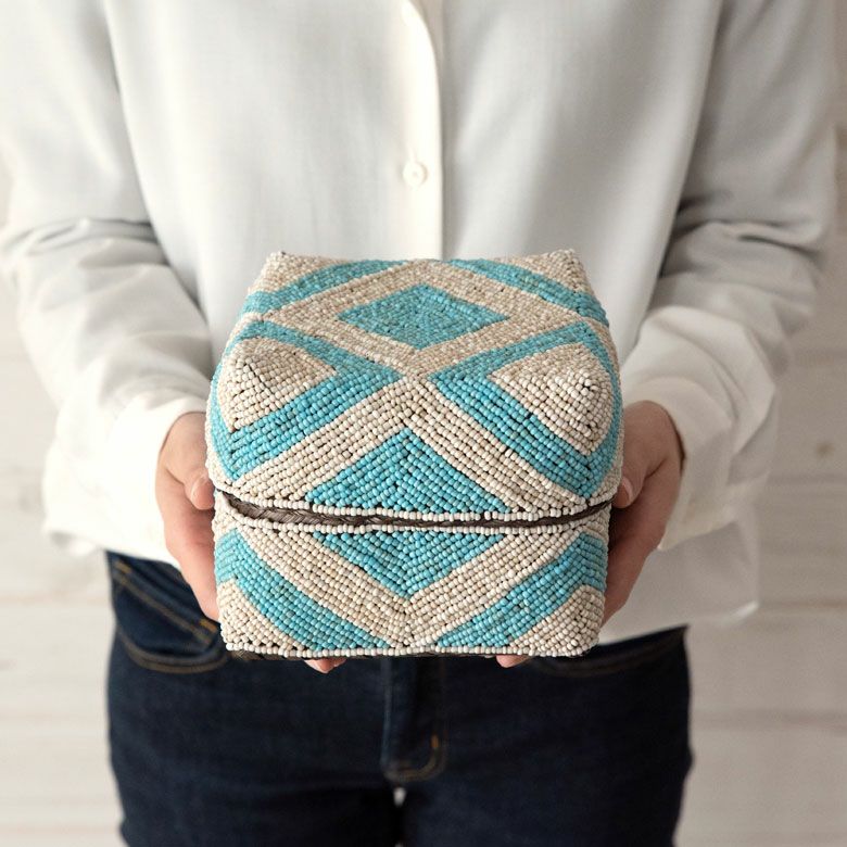 小物入れに便利なかわいいフタ付きケース ビーズソカシダイヤ柄 白×ブルー (M)