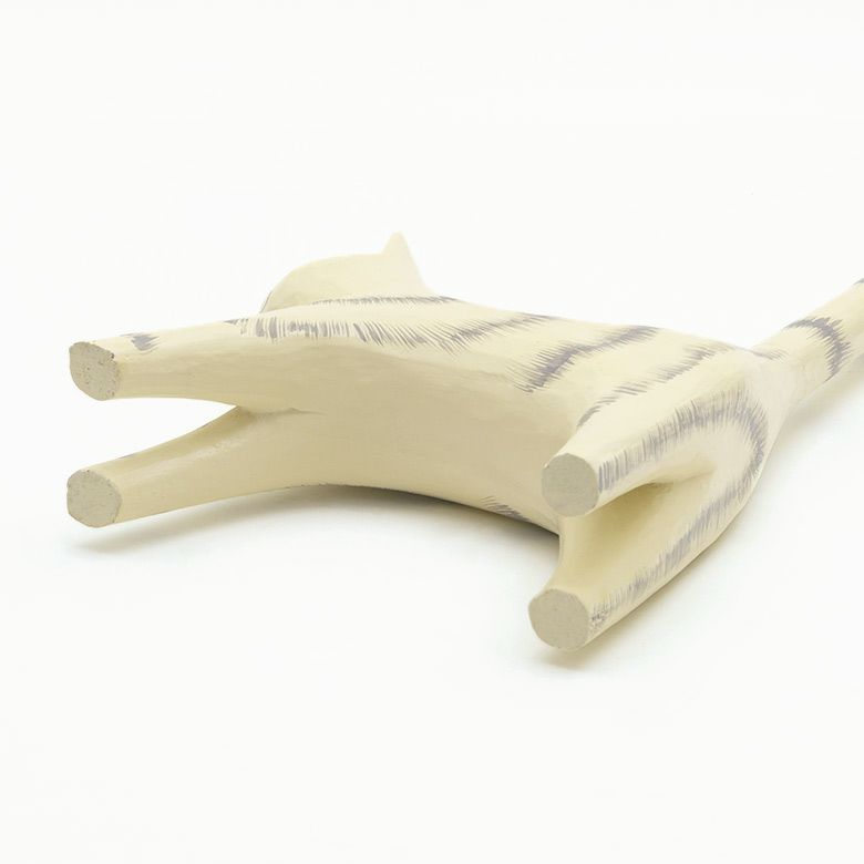 しっぽでトイレットペーパーを持ってくれる木彫りのネコのオブジェ。