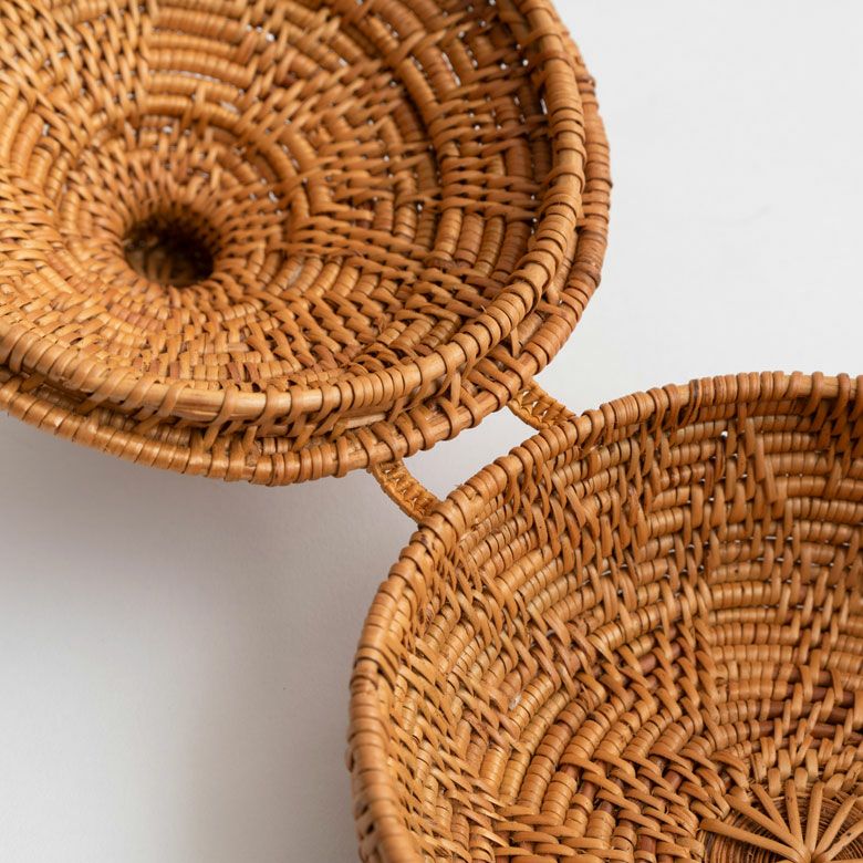 | ご注意 | ※ハンドメイドのためサイズ・形が写真と異なる場合があります。 ※写真の小物入れ以外は付属しません。 ※乾燥によってアタの繊維が収縮すると”ゆがみ”が生じる場合があります。 小さなゆがみであれば逆方向にひねれば解消することができます。 強くひねり過ぎると壊れる場合もありますのでご注意ください。 |