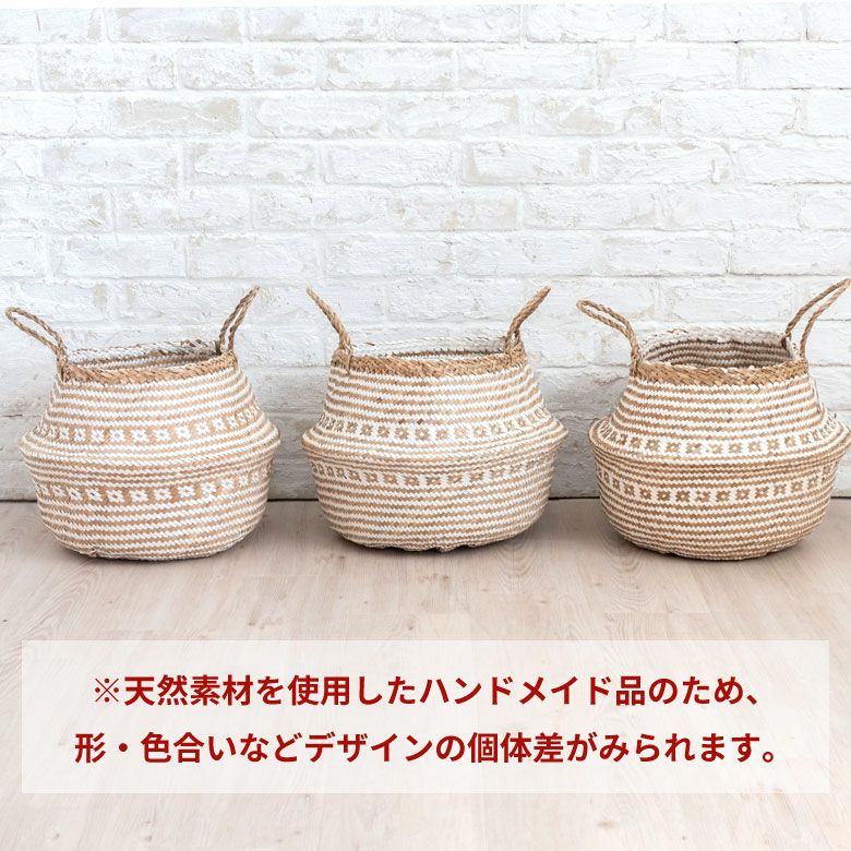 柔らかくしなやかな天然素材、シーグラスの大きめバスケット。