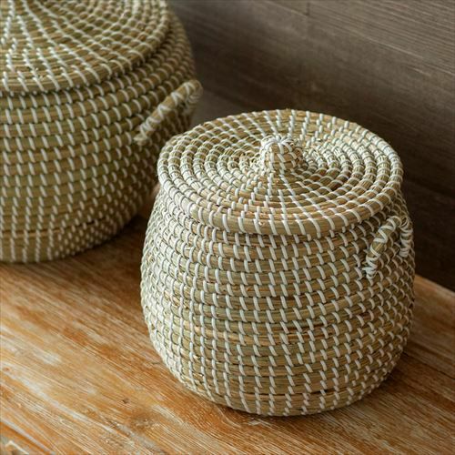 つぼ型フォルムが目を惹くデザインのこちらは、ひとつひとつ手作業で作られたシーグラス製バスケット。 収納しながら、インテリアの主役にもなります。コロンとしていて置いているだけでも可愛く、Payung店舗でも人気のバスケットです。