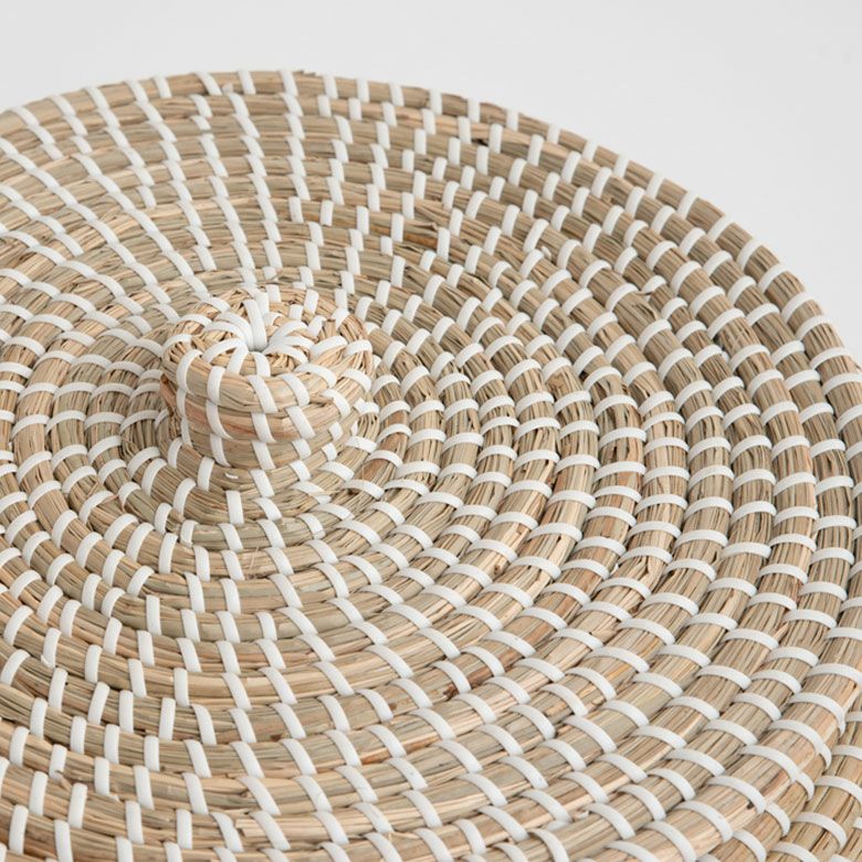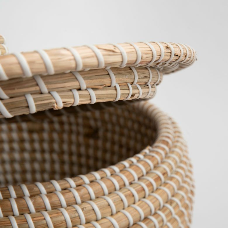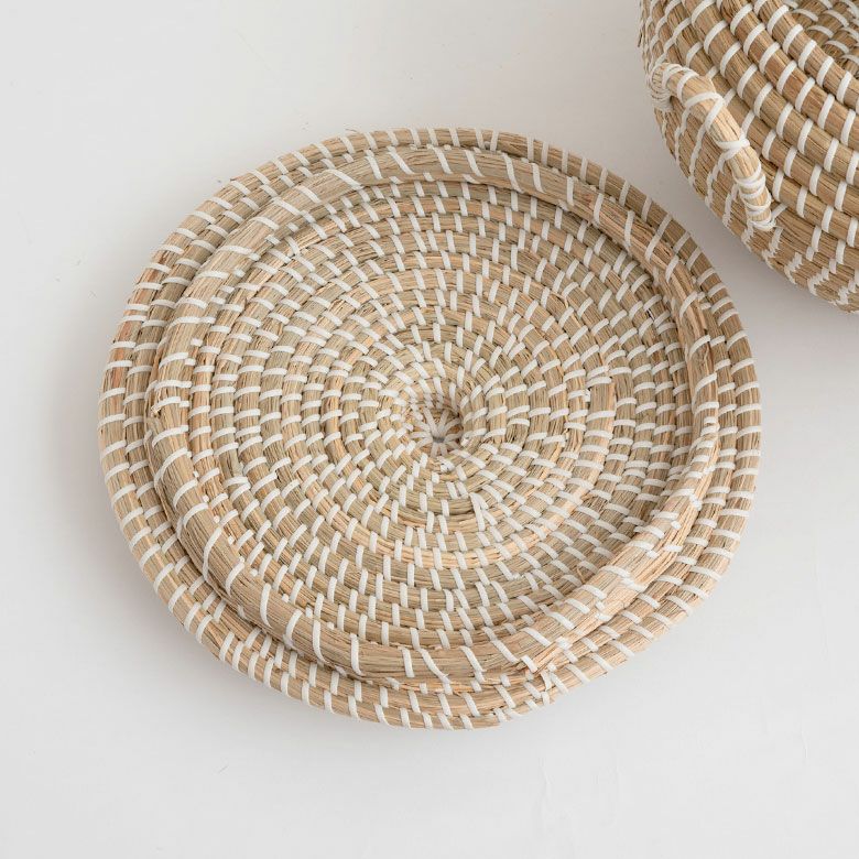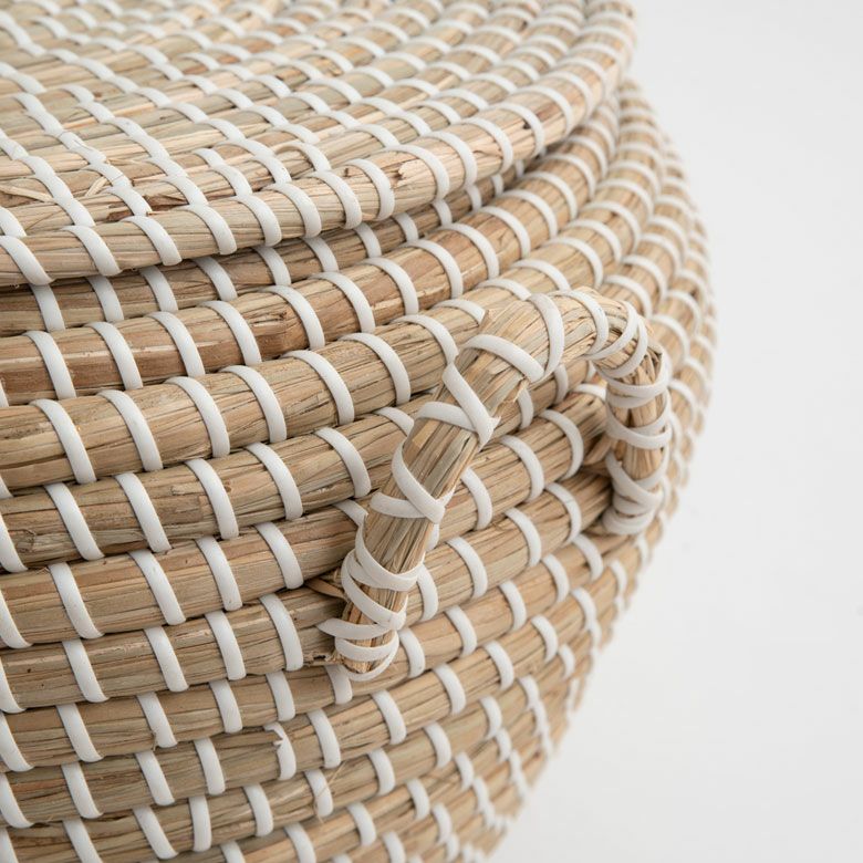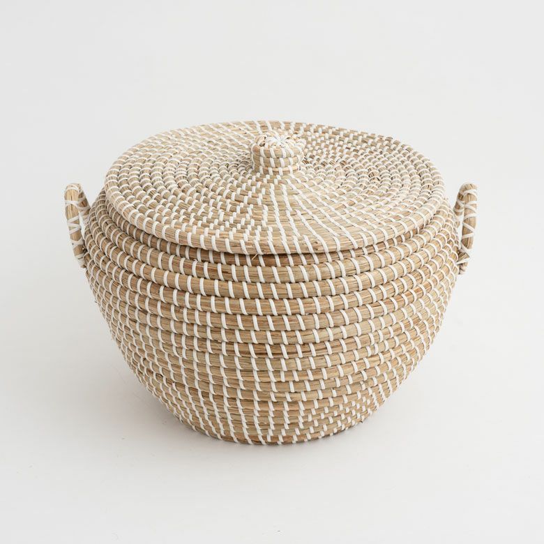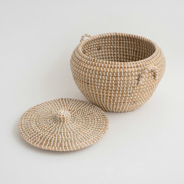 つぼ型フォルムが目を惹くデザインのこちらは、ひとつひとつ手作業で作られたシーグラス製バスケット。 収納しながら、インテリアの主役にもなります。ふた付で使い勝手が良く、Payung店舗でも人気のバスケットです。