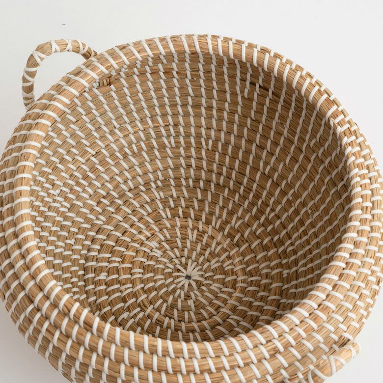 縁の部分や内側もしっかりと編み込まれています。 底面は平らで安定感があり安心して物を入れることができます。
