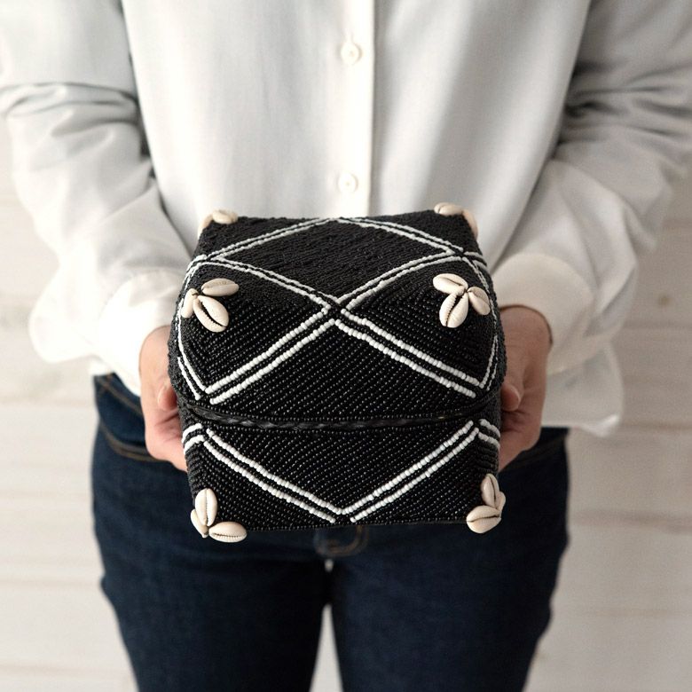 ビーズソカシクロス柄 シェル付き ブラック (M)