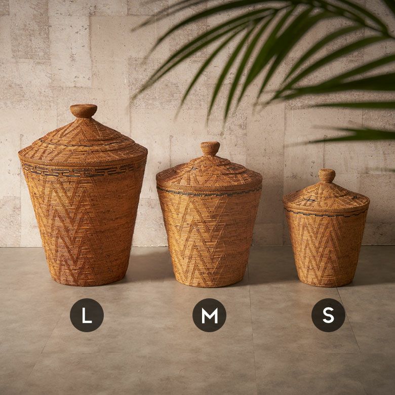 ヤシの葉で編まれた凹凸が美しい フローレスバスケットBETUNG M