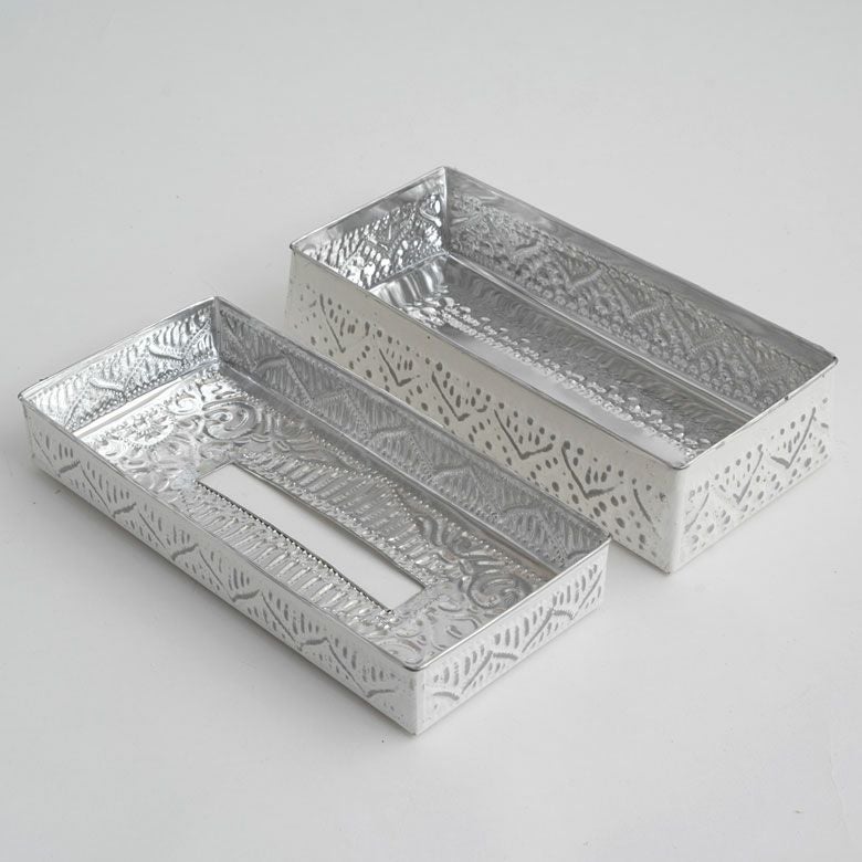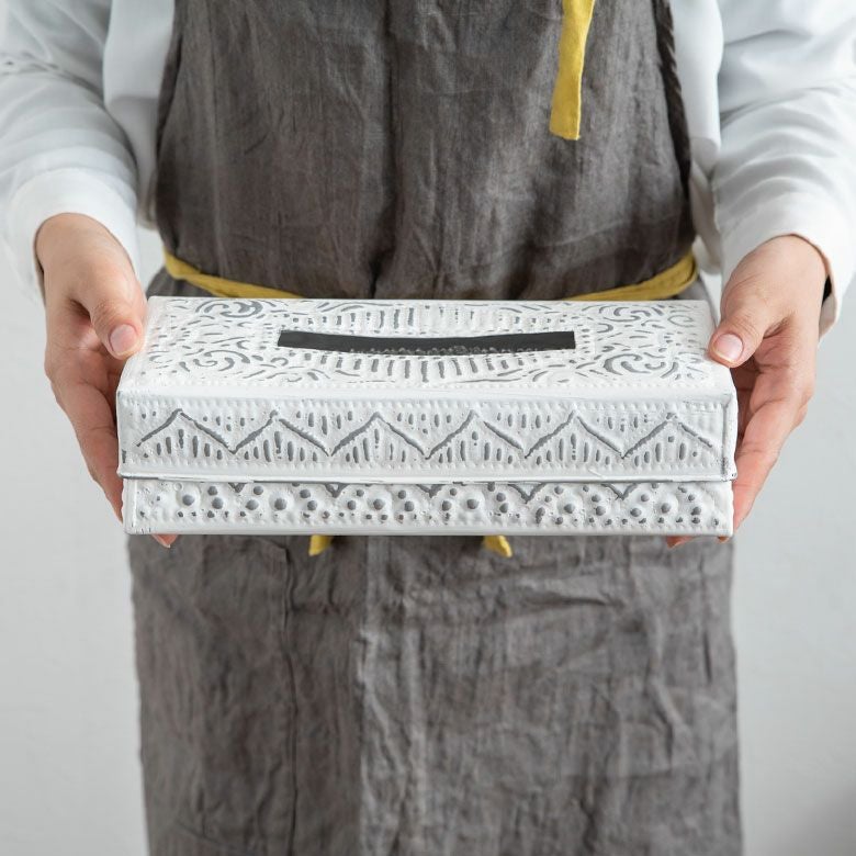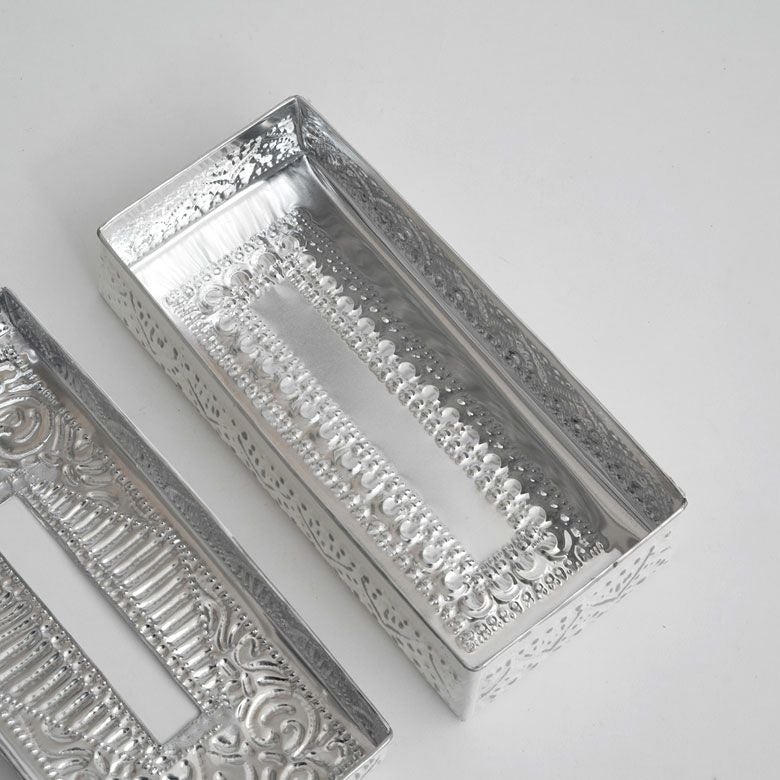 | ご注意 | ※ハンドメイドのためサイズ・形が写真と異なる場合があります。 ※柔らかな素材ですので凹みなどが生じた場合は、手で形を整えて直してください。 ※アルミの凹凸や切り口部分などでケガをしないよう、取り扱いにお気をつけ下さい。 ※ご自宅のティッシュケースのサイズをご確認の上ご購入ください。 |