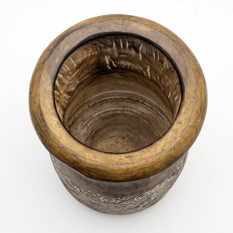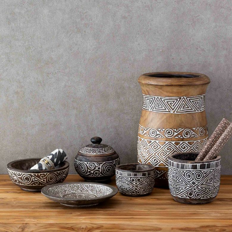 表面に施されたアジアンオーラが漂うミステリアスな彫刻はインドネシア・スンバ島に伝わる伝統的な文様です。