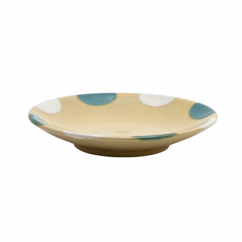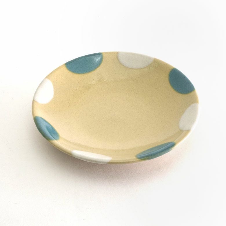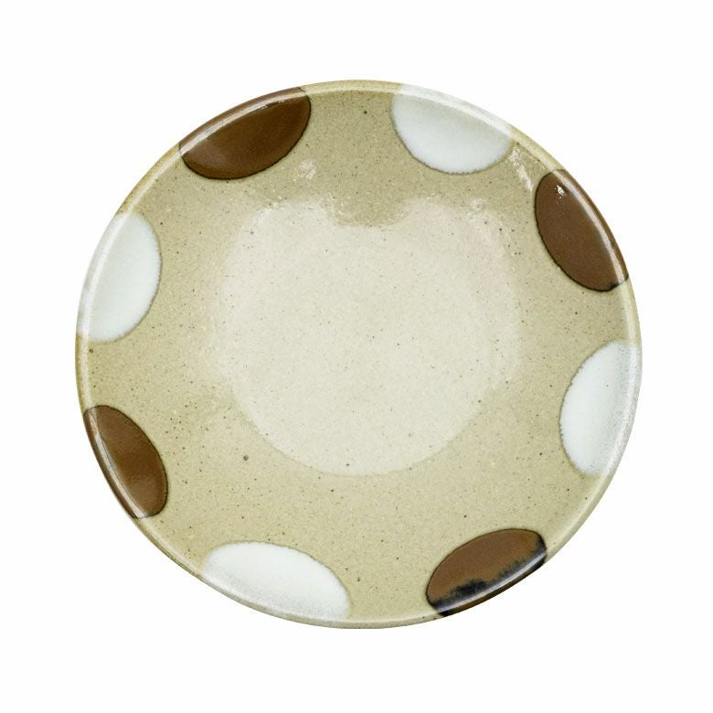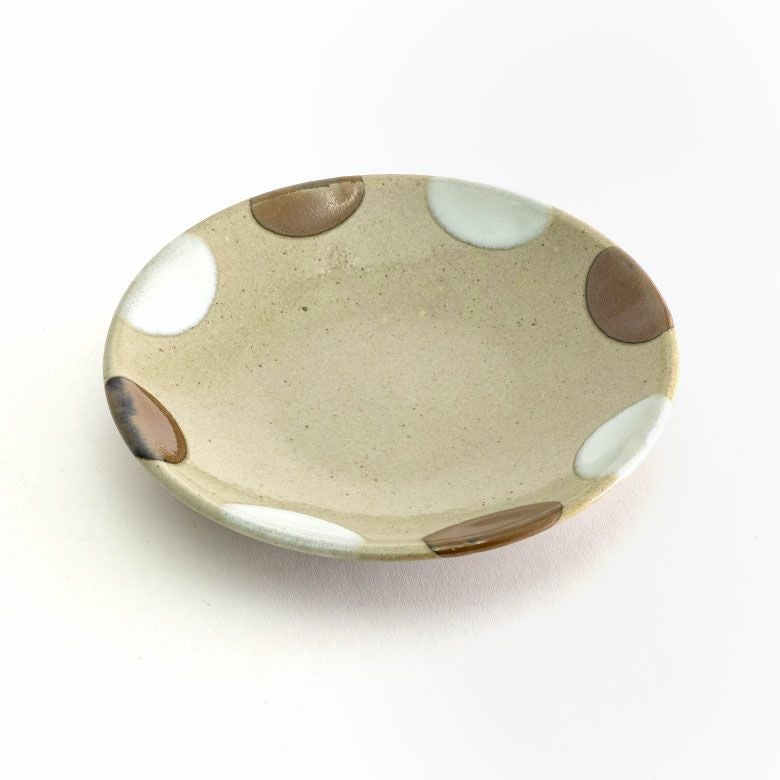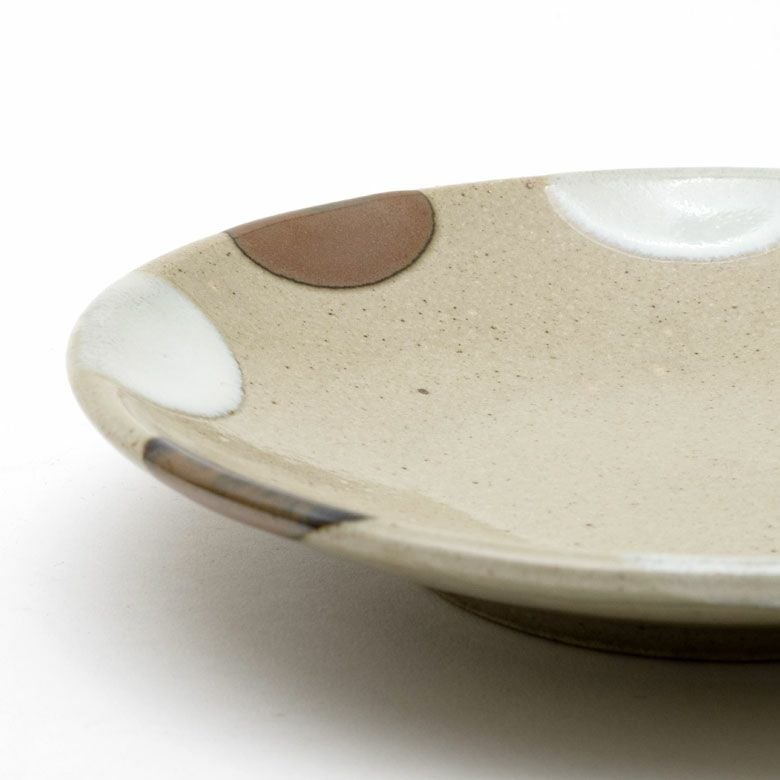 益子の伝統釉薬を使った、可愛らしいポイント柄。 料理を盛り付けたときに水玉模様がアクセントになり、華やかな印象になります。