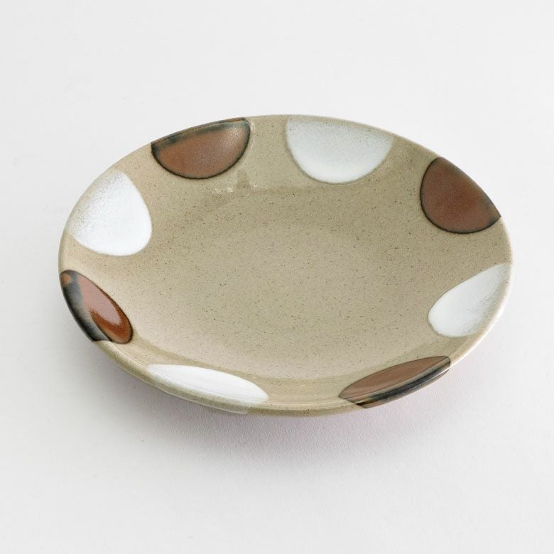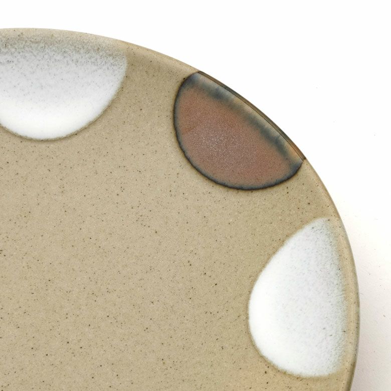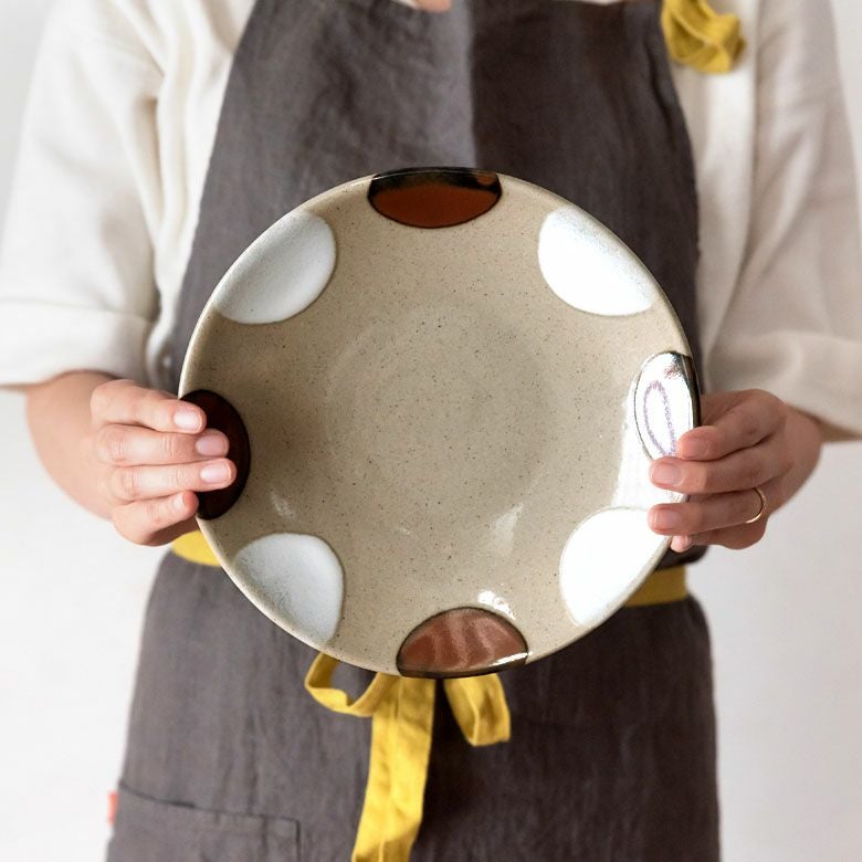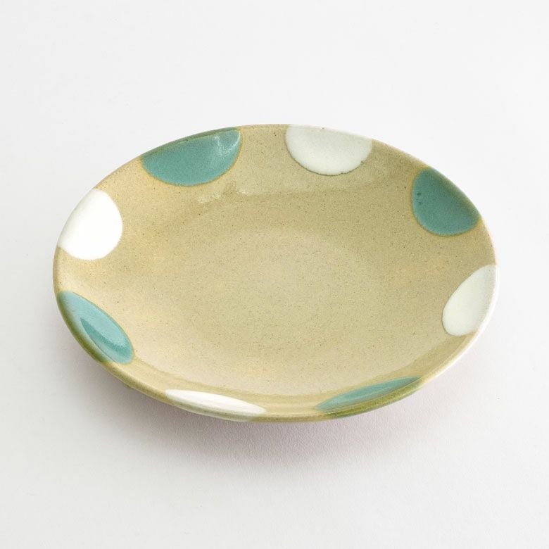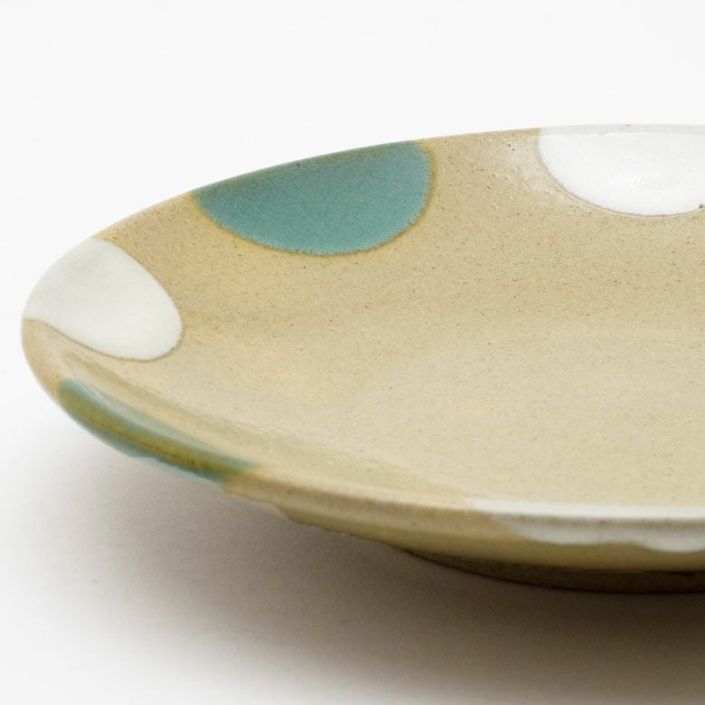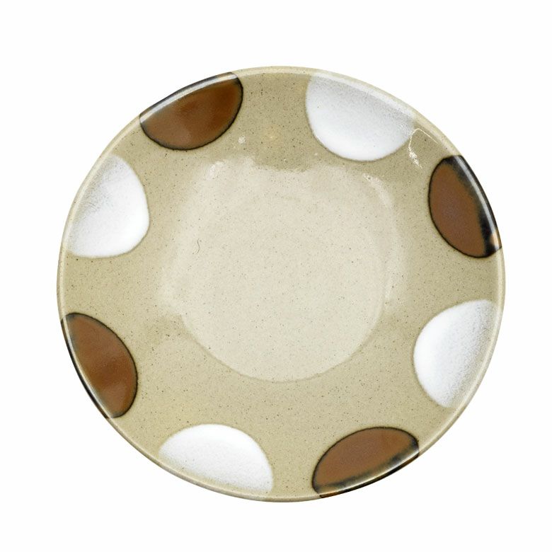 益子の伝統釉薬を使った、可愛らしいポイント柄。 料理を盛り付けたときに水玉模様がアクセントになり、華やかな印象になります。