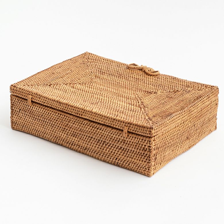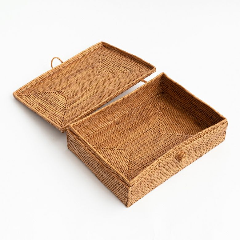 天然のアタを丁寧に編みこんで作り上げたアジアンボックス型バスケット。