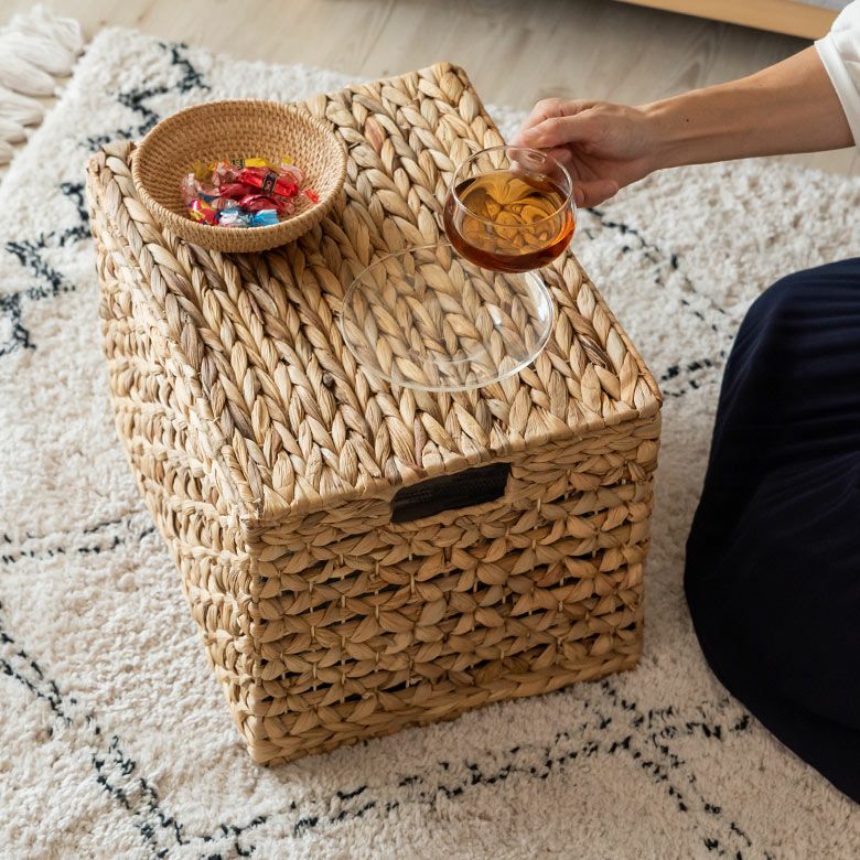 フタ付きで中身が隠せるので、リビングやキッチンなど