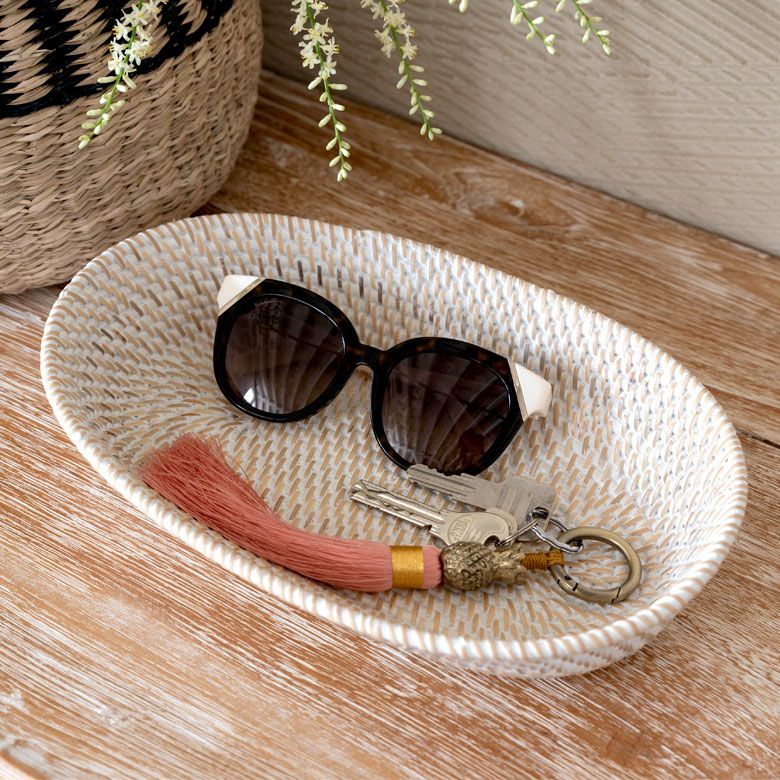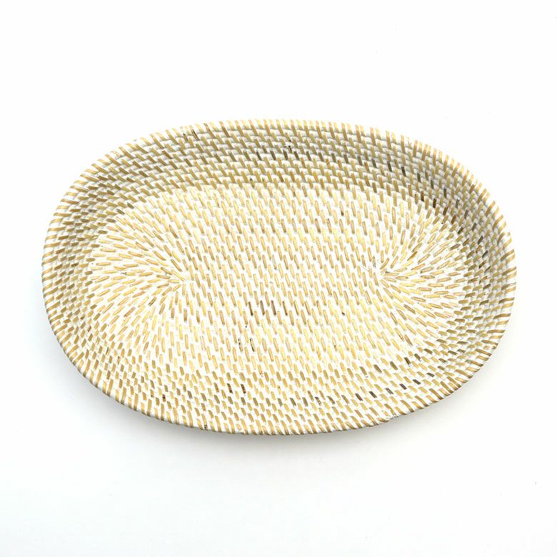 ホワイトラタン オーバルトレイバスケット Lサイズ