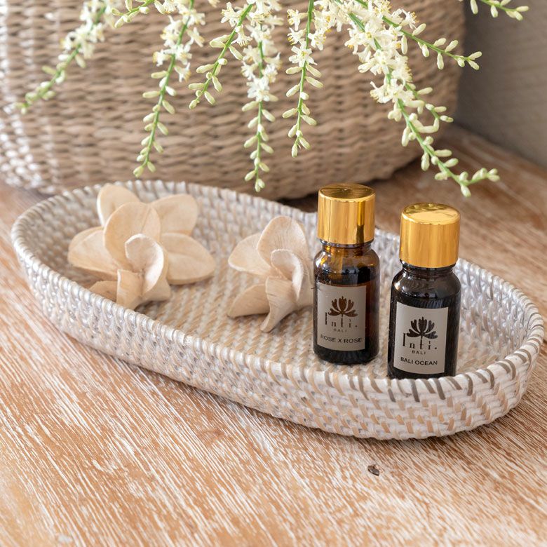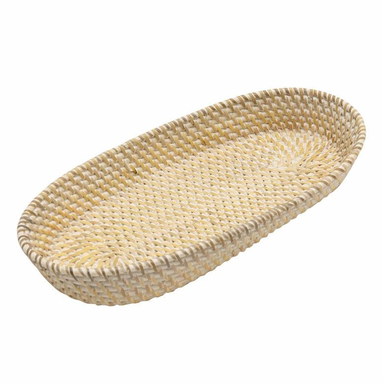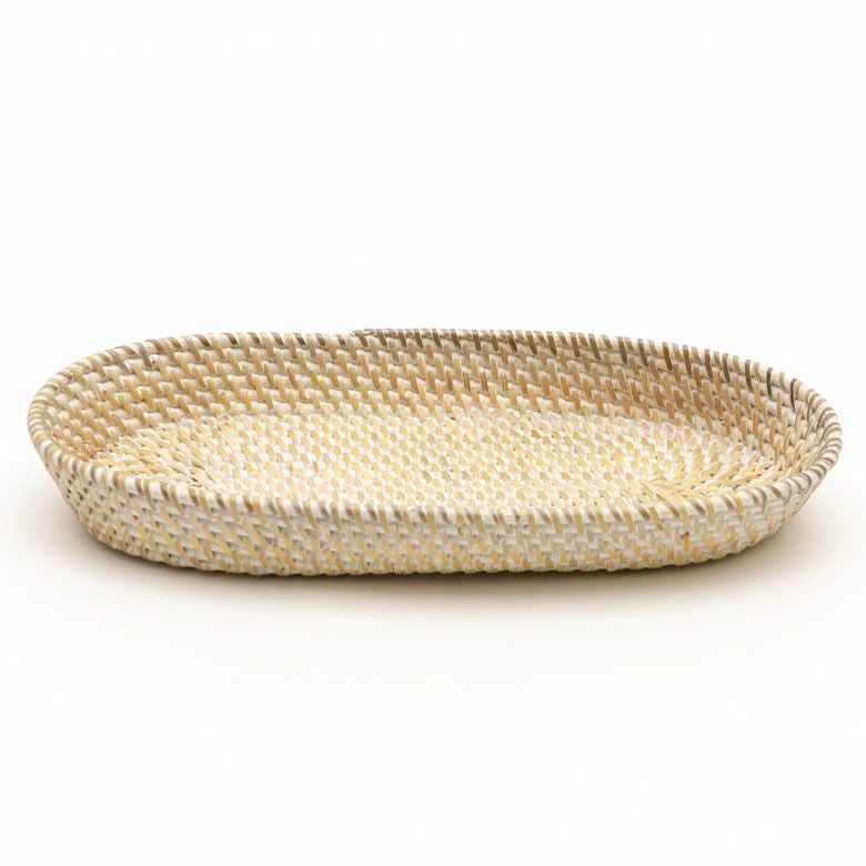 ホワイトラタン オーバルトレイバスケット Mサイズ