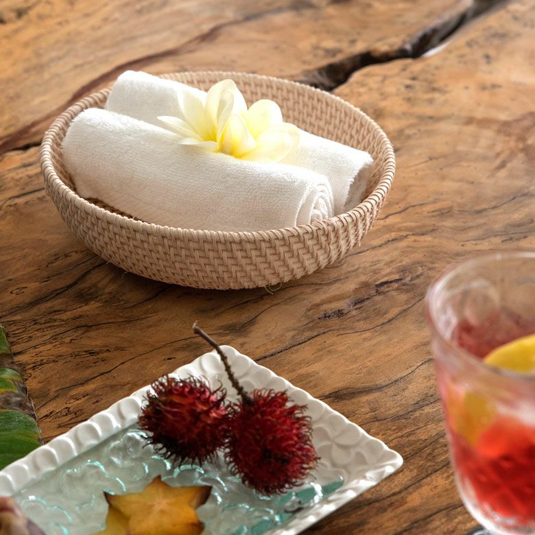 | ご注意 | ※色移りする場合がありますので、特に白いテーブルはご注意ください。 ※天然素材を使用したハンドメイド製品のため、サイズ・形が写真と異なる場合があります。 ※節や割れ目、ささくれなどがある場合があります。怪我をしないようお気をつけ下さい。 ※アジアン雑貨特有の小さなキズやヒビ・色むら等はご了承ください。編み目に隙間がある場合もございます。 ※水に濡れた場合は陰干ししてください。 ※湿度等によって反る場合があります。反った場合は平らな場所で重しを置いて整えてください。 |