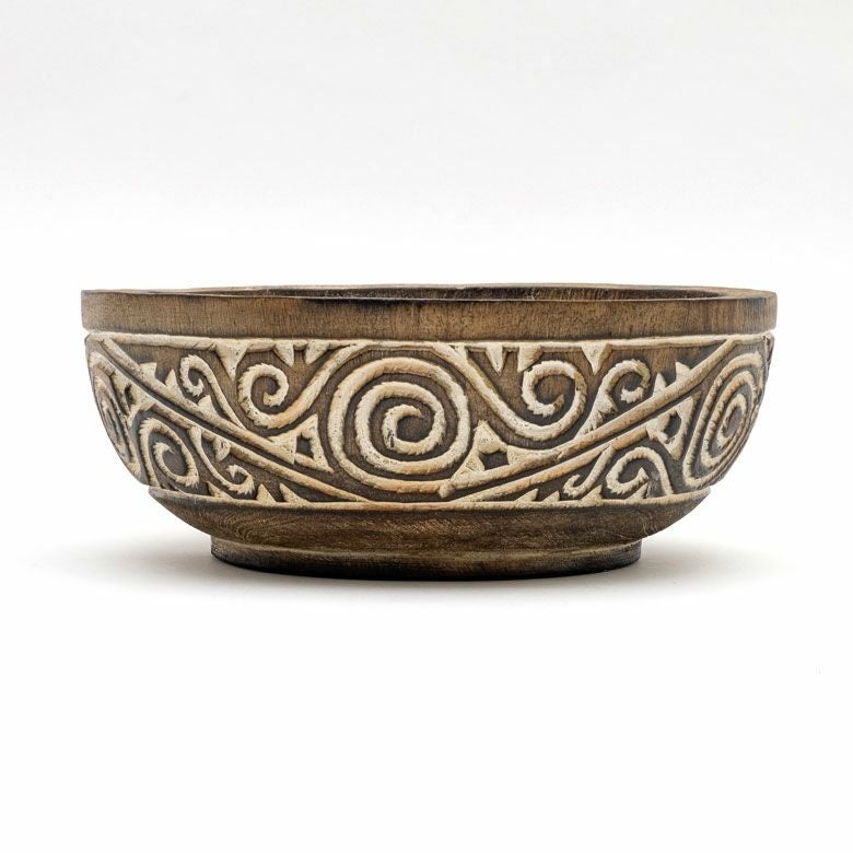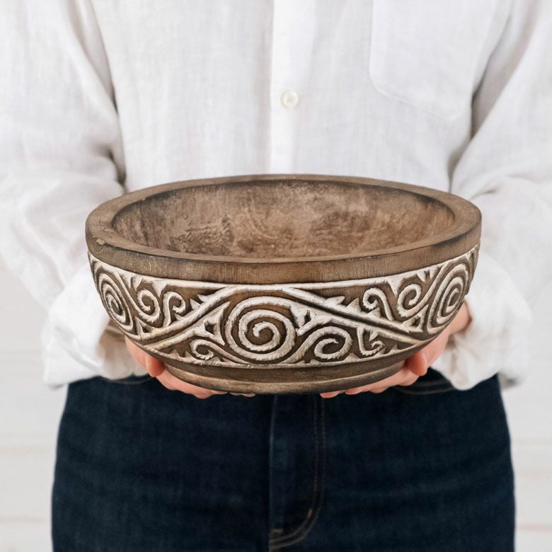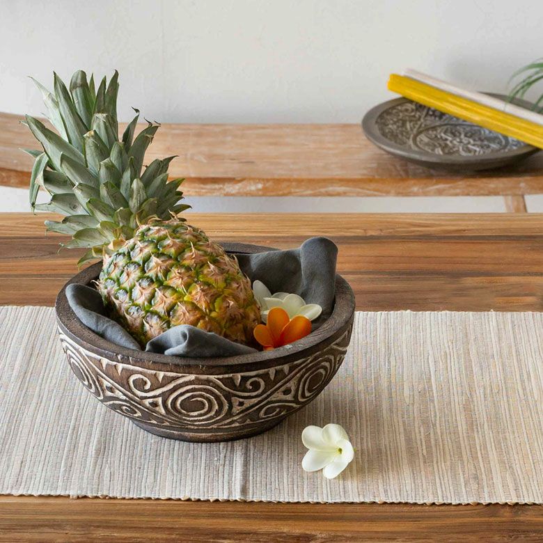 表面に施されたアジアンオーラが漂うミステリアスな彫刻はインドネシア・スンバ島に伝わる伝統的な文様です。