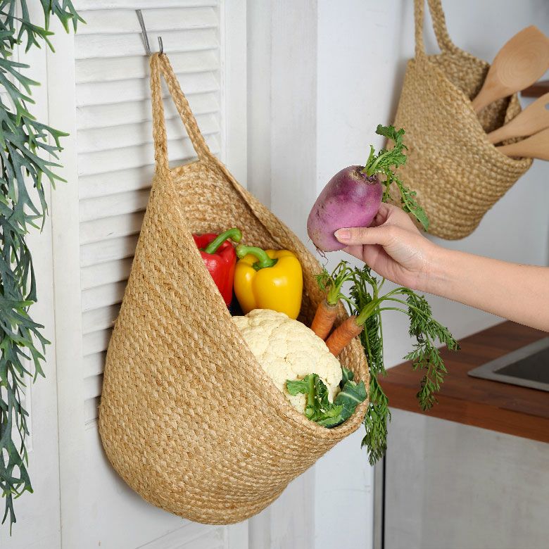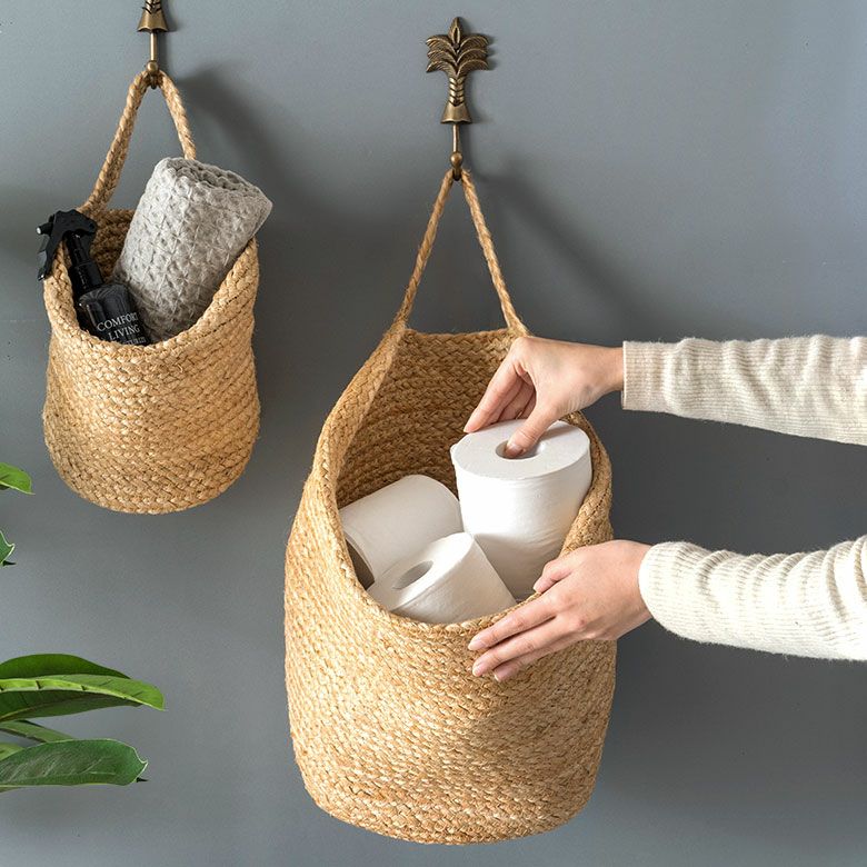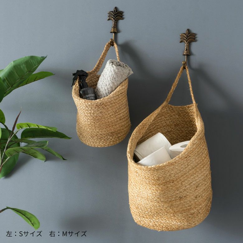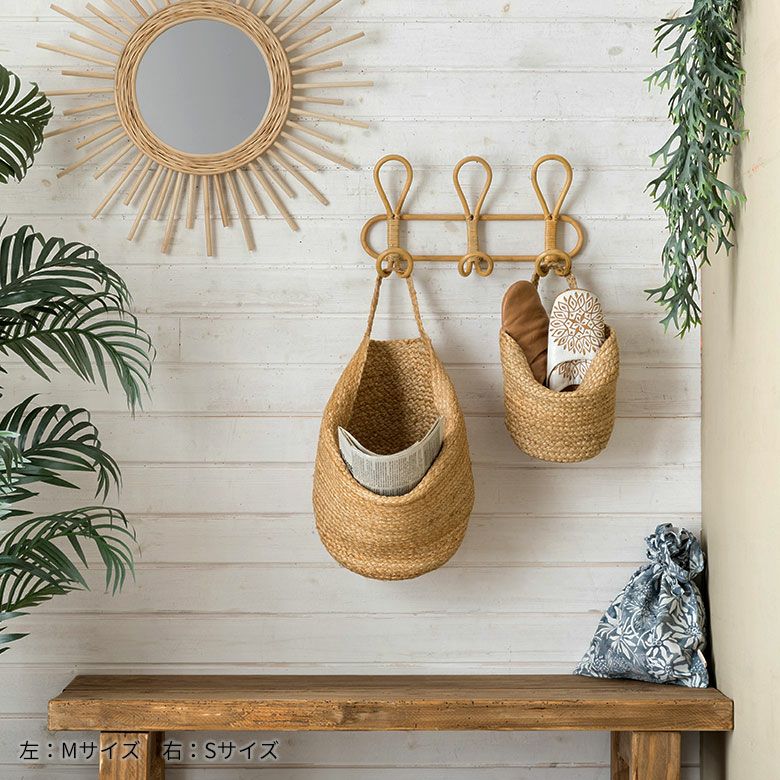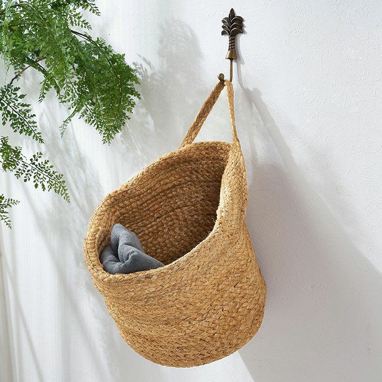 ジュート100%で織られた、ナチュラルな風合いを楽しめる壁掛けバスケット。