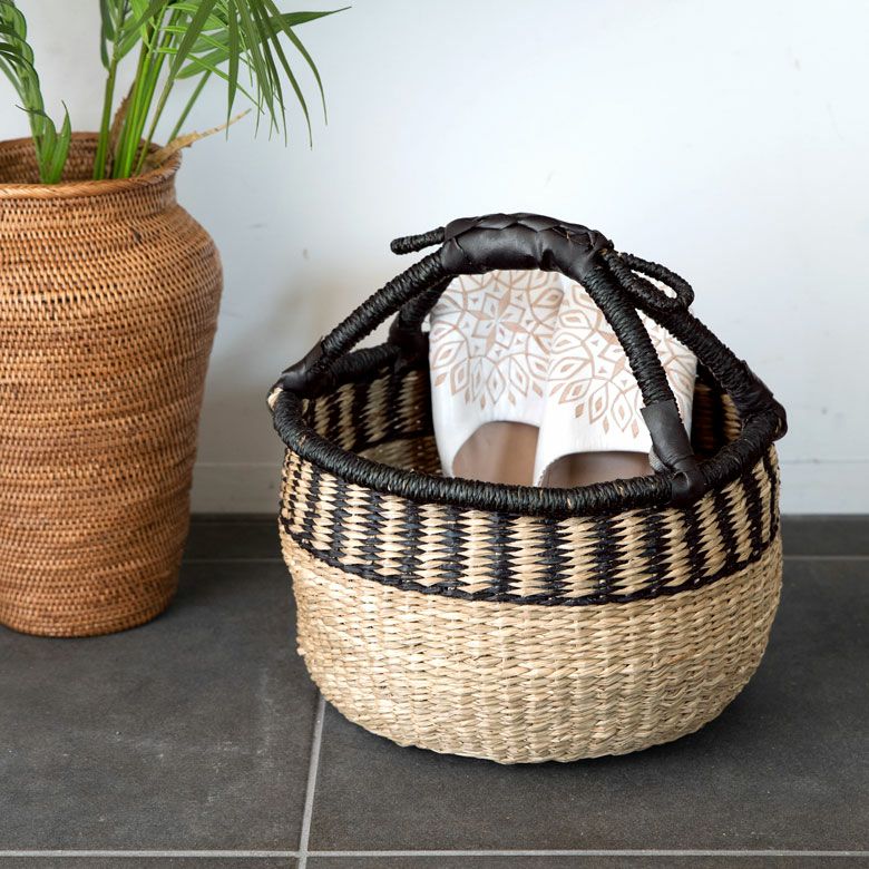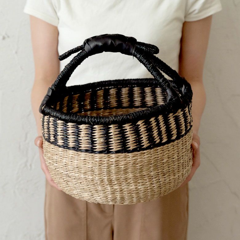柔らかくしなやかな天然素材、シーグラスのバスケット。