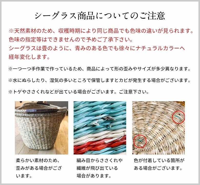 | 素材 | シーグラス(天然水草)、合皮(フェイクレザー) |